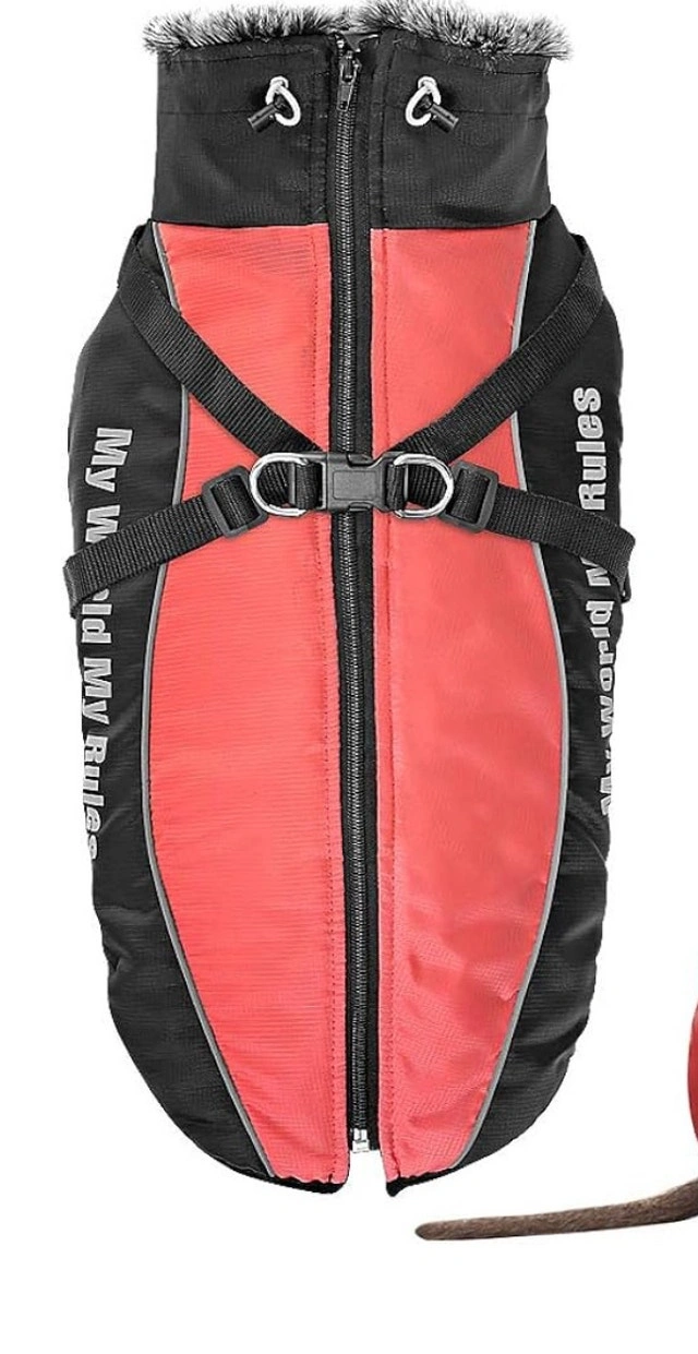 PVC anti-pinch placket, upgraded transparent placket at the zipper, no hair, beautiful and practical The plush neckline is foldable, and the foldable high-neck design is effectively windproof and warm, making the pet's winter warmer. The inside of the clothes is covered with silk, fluffy and soft, firmly locked in warmth, and can be pulled out in multiple colors. The clothes have a reflective effect, and the back has a reflective strip, which is reflective at night, Waterproof coated fabric, not afraid of drizzle/light snow/fog, travel lightly, freely,and it is safe to go out at night.