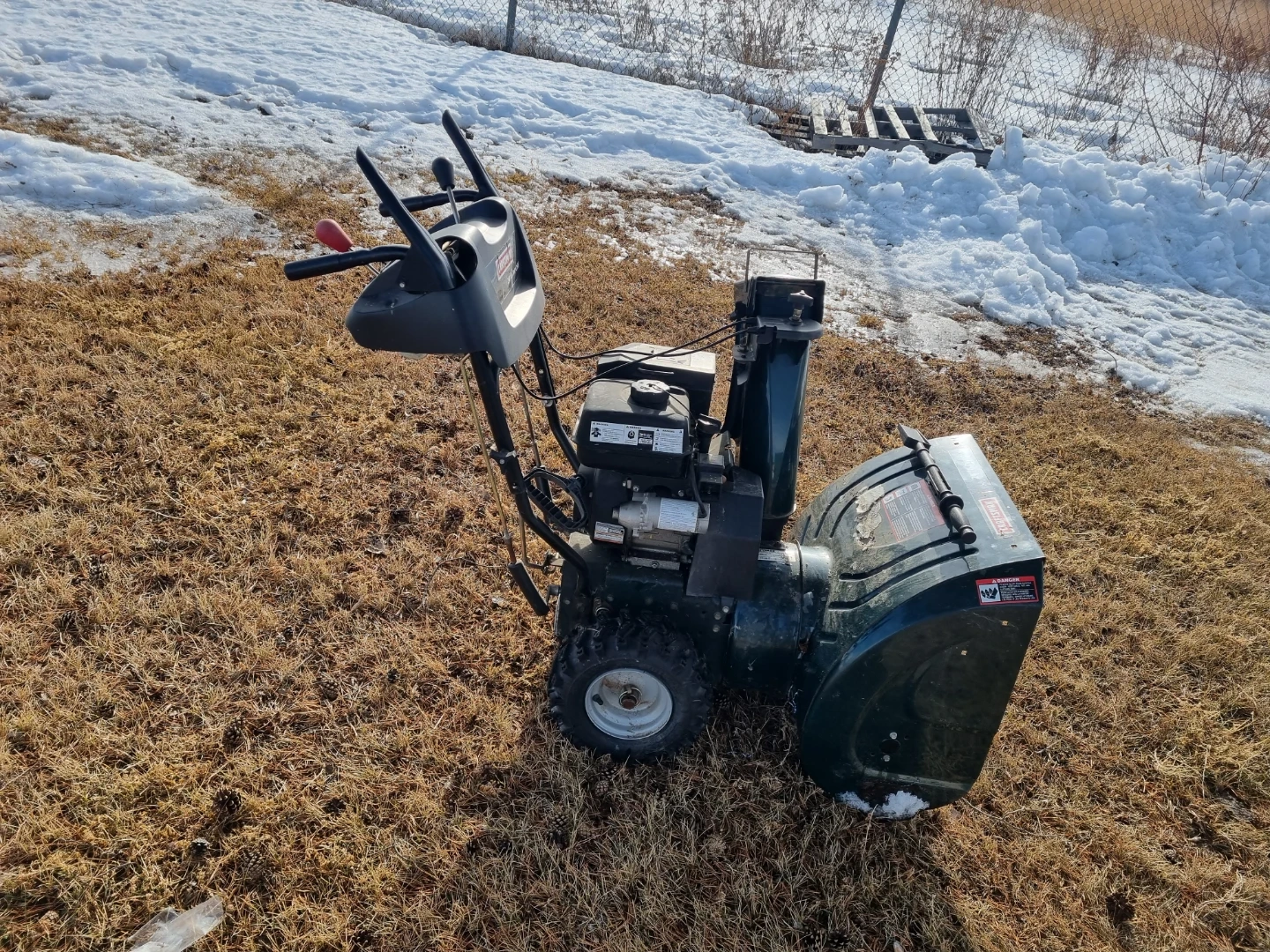 This is a Craftsman snow blower with a 24-inch clearing width and a 6.0HP OHV engine. It's a gas-powered machine ready for winter.