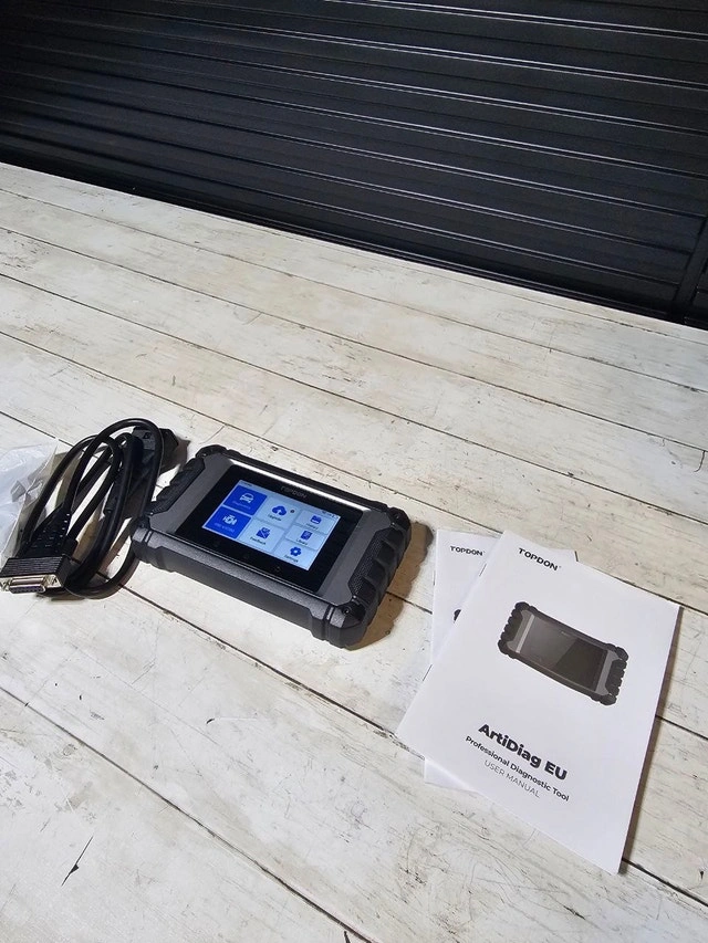 This is a new TOPDON ArtiDiag EU, a full-system diagnostic tool designed for Mercedes-Benz, BMW, and V.A.G vehicles. It offers ECU online coding, all service functions, and bi-directional control. It's ideal for diagnosing 15 European brands, including BENZ, BMW, and VAG models. You can send direct commands to the vehicle ECU to test components like windows, lights, and the air conditioning system for accurate problem identification. The ECU Coding feature allows you to customize your vehicle, flash hidden features, or disable unwanted functions. It provides comprehensive diagnostics with full OBD2 support, covering ECM, TCM, ABS, SRS, and TPMS. It also includes essential service functions like Oil, EPB, and BMS resets, Throttle Learning, and more. The tool has a 4-inch display, 2GB RAM, 32GB ROM, a 1.3Ghz quad-core processor, and supports 11 languages. It's powered by a 3000mAh battery. Condition: New. For Sale By: Owner.