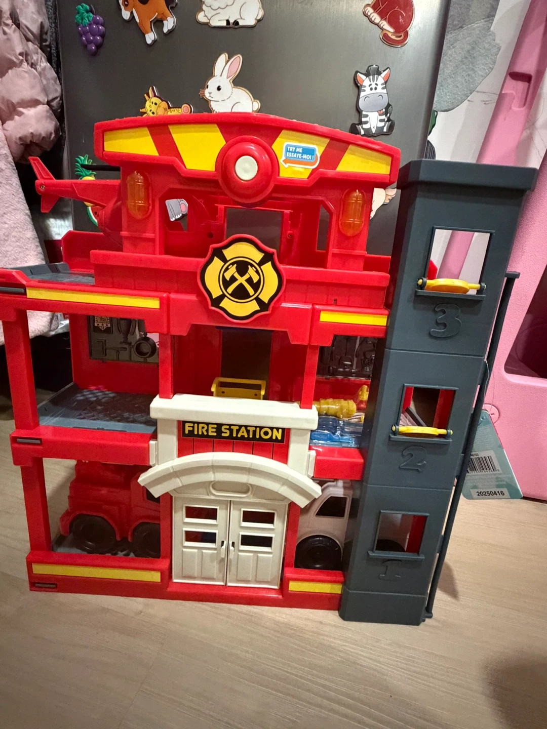 This Kid Connection Fire Station playset comes with 31 pieces for hours of fun. It's designed for ages 3 and up. A great playset for little firefighters!