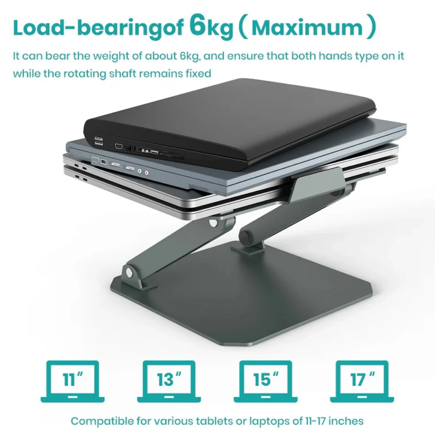 - LOAD-BEARING OF 6KG(MAX): It can bear the weight of about 6kg, and ensure that both hands type on it while the rotating shaft remains fixed.