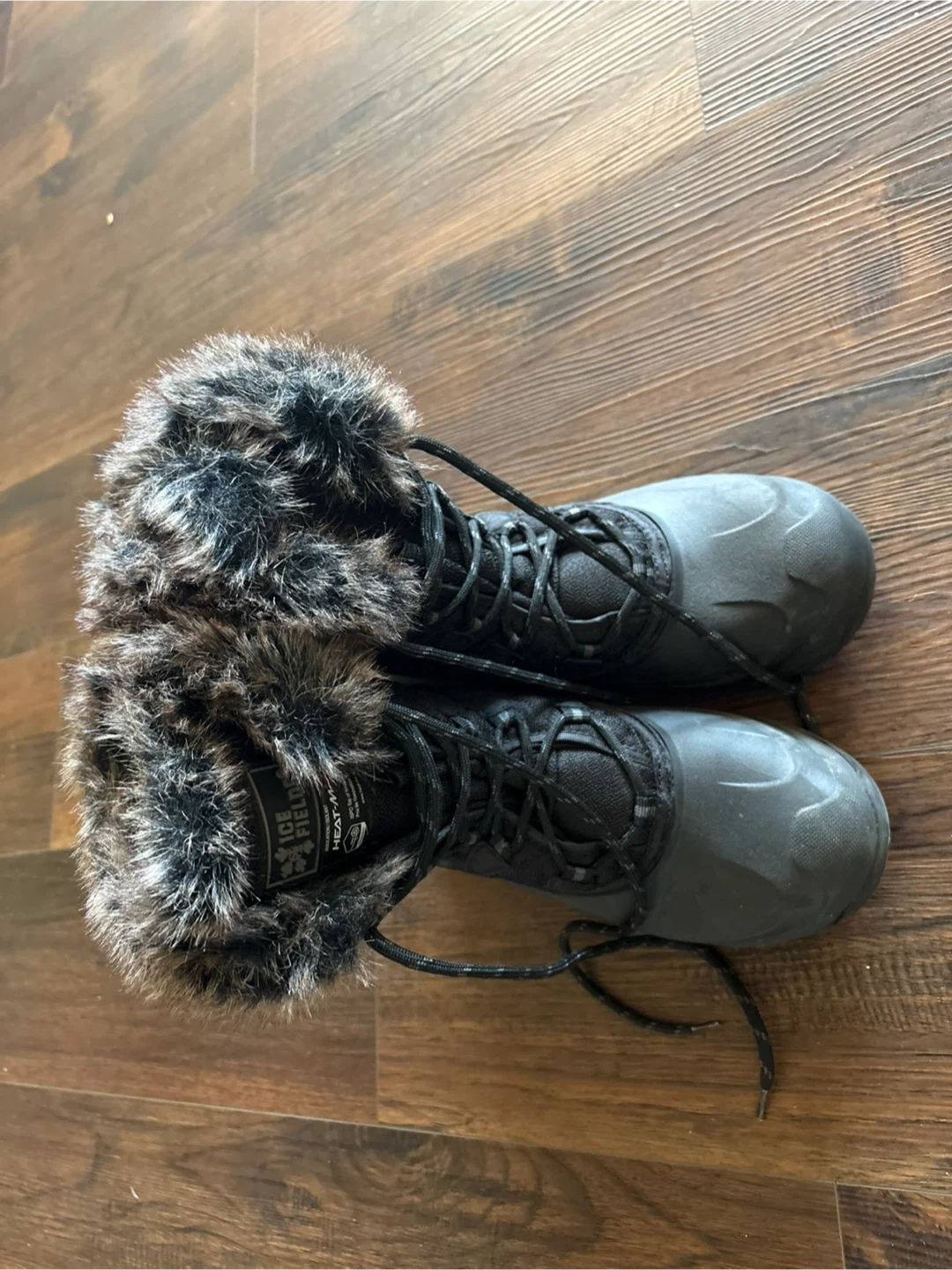 33Selling a pair of Ice Field winter boots in women's size 8. They are in good condition and ready to keep your feet warm this winter! They have a faux fur trim and lace up closure. Bought from Walmart