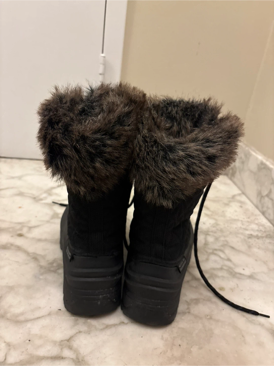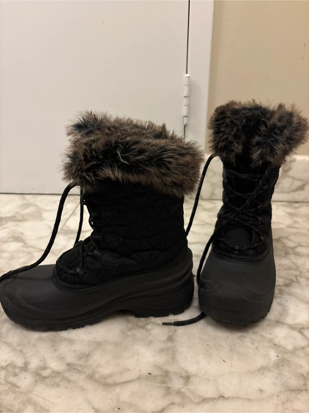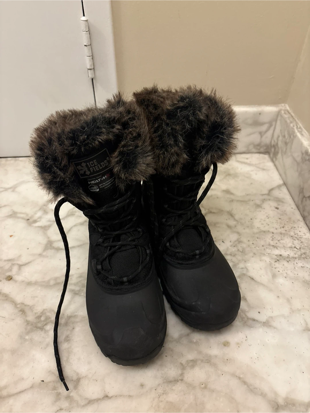 33Selling a pair of Ice Fields winter boots in black. They have a faux fur trim and are in great condition. Perfect for keeping your feet warm and dry this winter! Purchased from Walmart Condition- New Price: 20