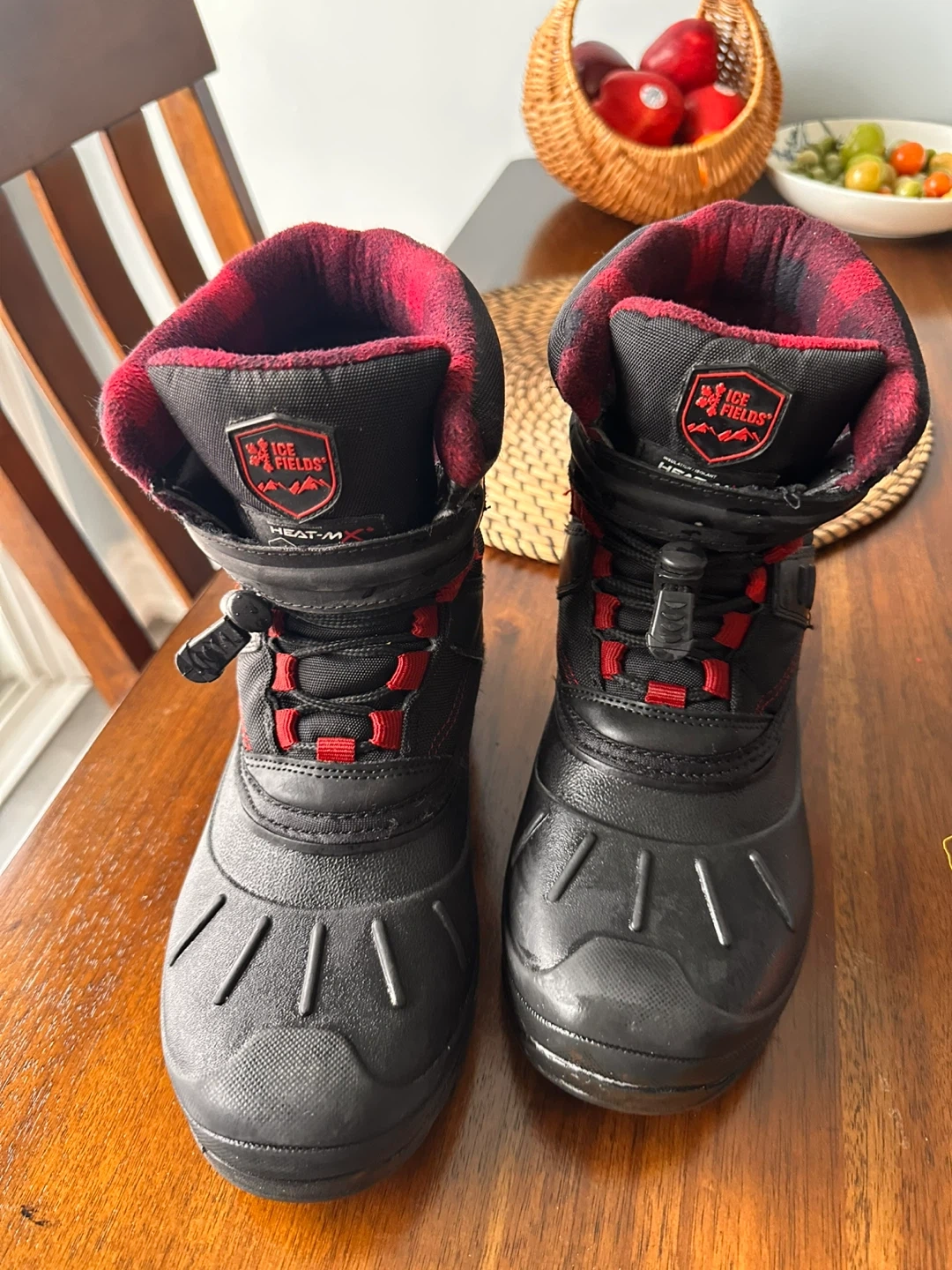 Selling a pair of Ice Fields Heat-MX winter boots! They're black with a red and black plaid lining. Perfect for keeping your feet warm and dry this winter season