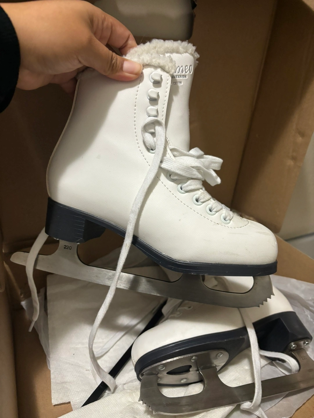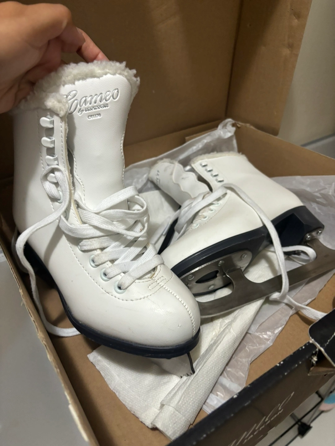 338Cameo by Jackson CS1120 White figure skates with fleece lining and stainless steel blades. Size 3 junior