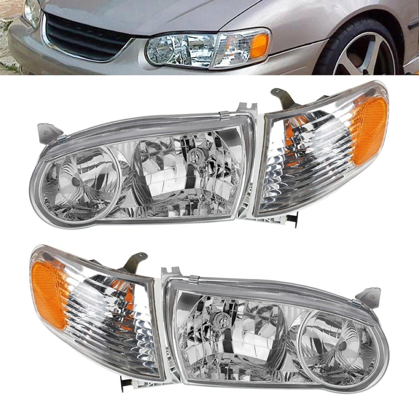 GXYWADY Headlights Assembly Replacement for 2001 2002 Corolla w/Corner Signal Lamp Headlamp Left and Right Side