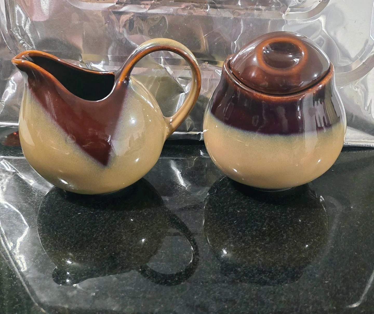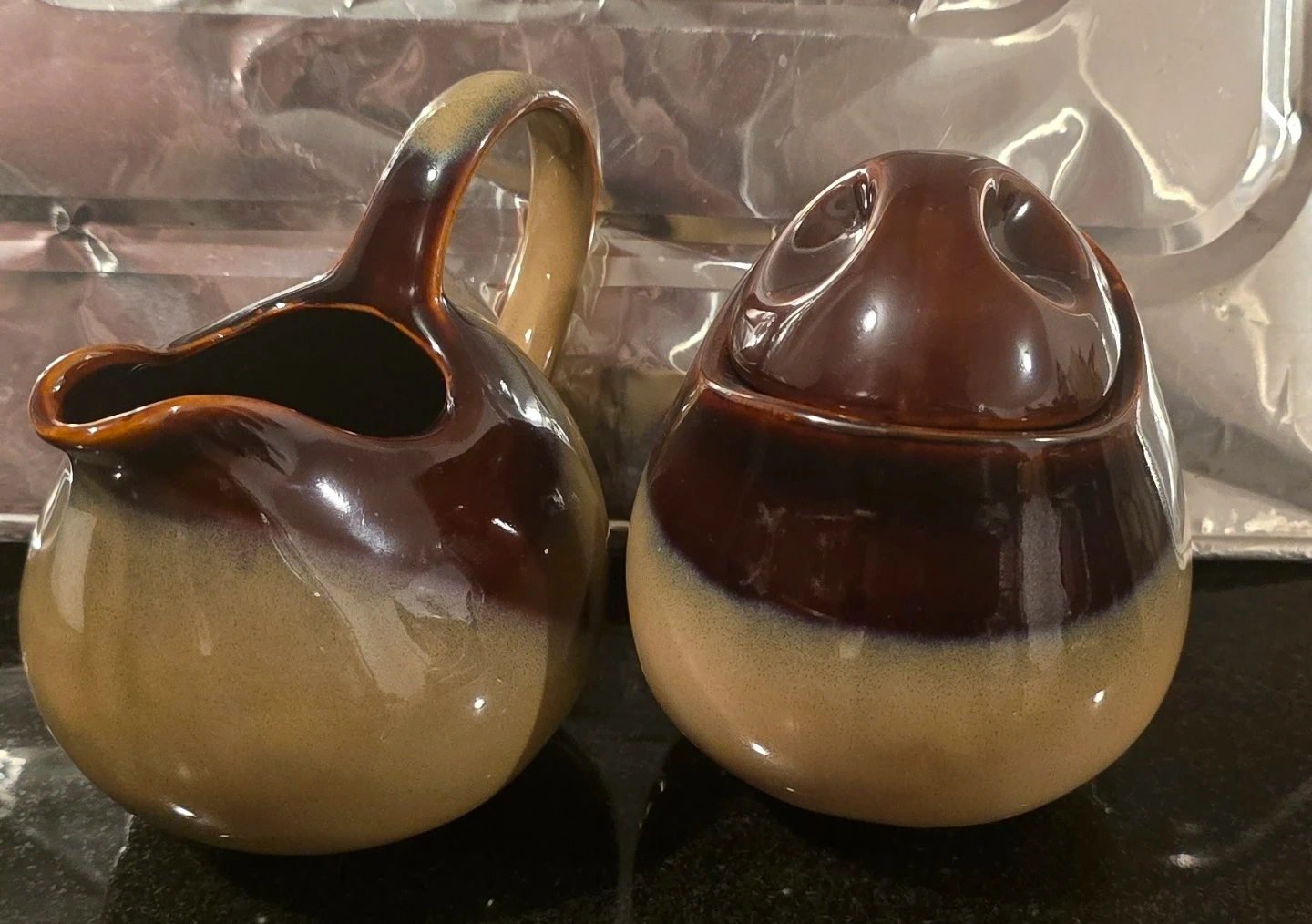 Sango Nova Brown Creamer and Sugar Bowl Set