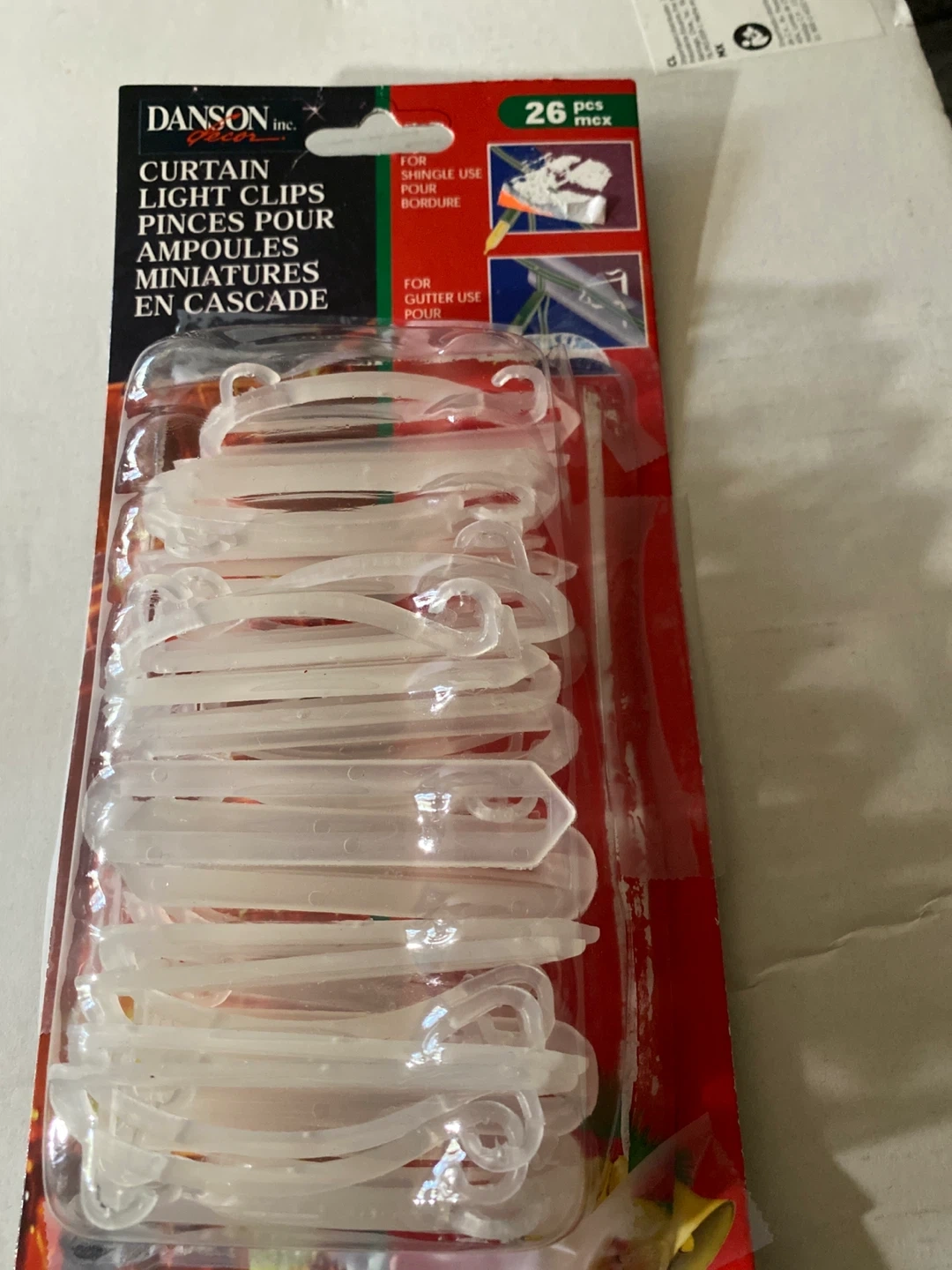 422Selling 2 packages of icicle light 26 clips each pkg. These are for outdoor use. Each set can hang up to 125 icicle lights and attach to most rooflines and gutters easily. 2 different style of clips. Price per set Moving Sale Pick up only