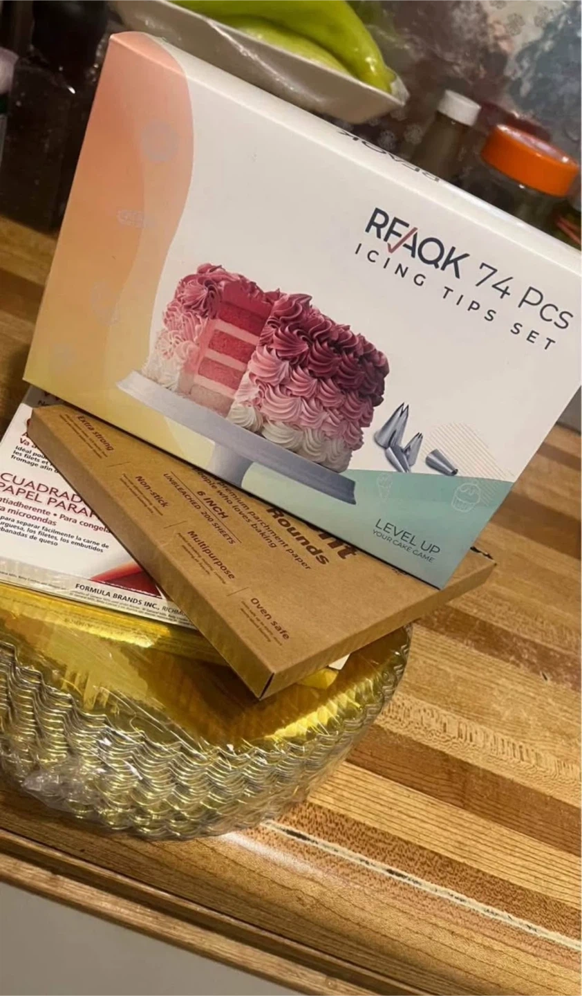 Get ready to level up your cake game with this RFAQK 74-piece icing tips set! It includes a variety of tips to create beautiful designs. Also included are 6-inch unbleached parchment paper rounds (200 sheets) that are non-stick, multipurpose, and oven safe 📍Don Mills/Sheppard-Yonge