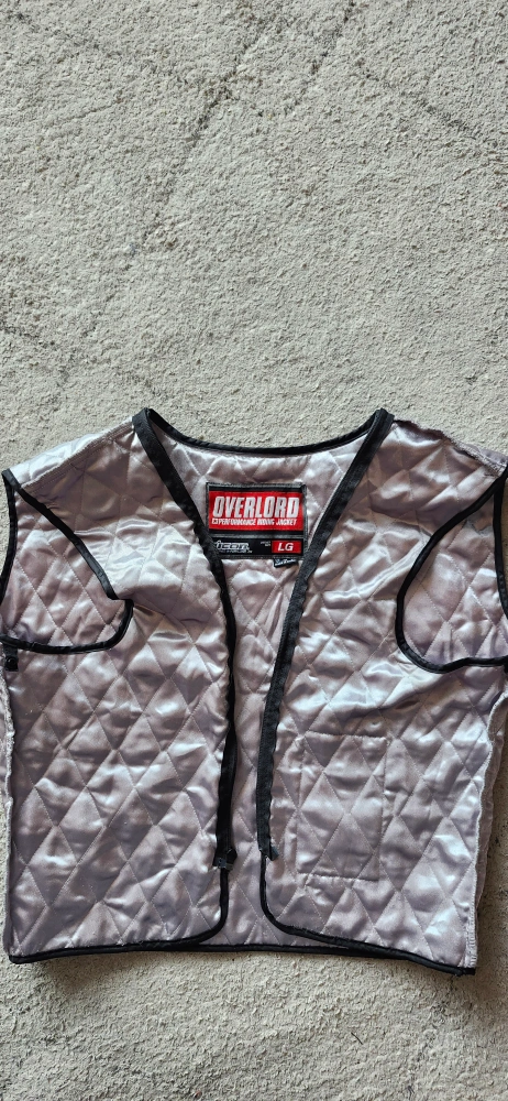 Men's Icon Overlord perforated leather motorcycle jacket. Size large. Black leather. Features armour padding. Good condition. comes with removable inner insulation. Don't ride anymore so looking to sell...can includes Icon gloves and few other riding surprises!