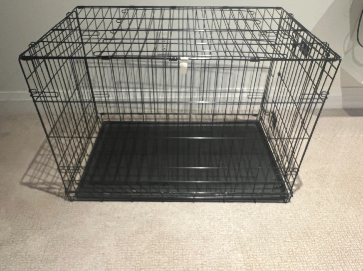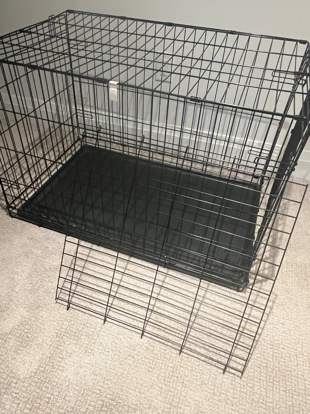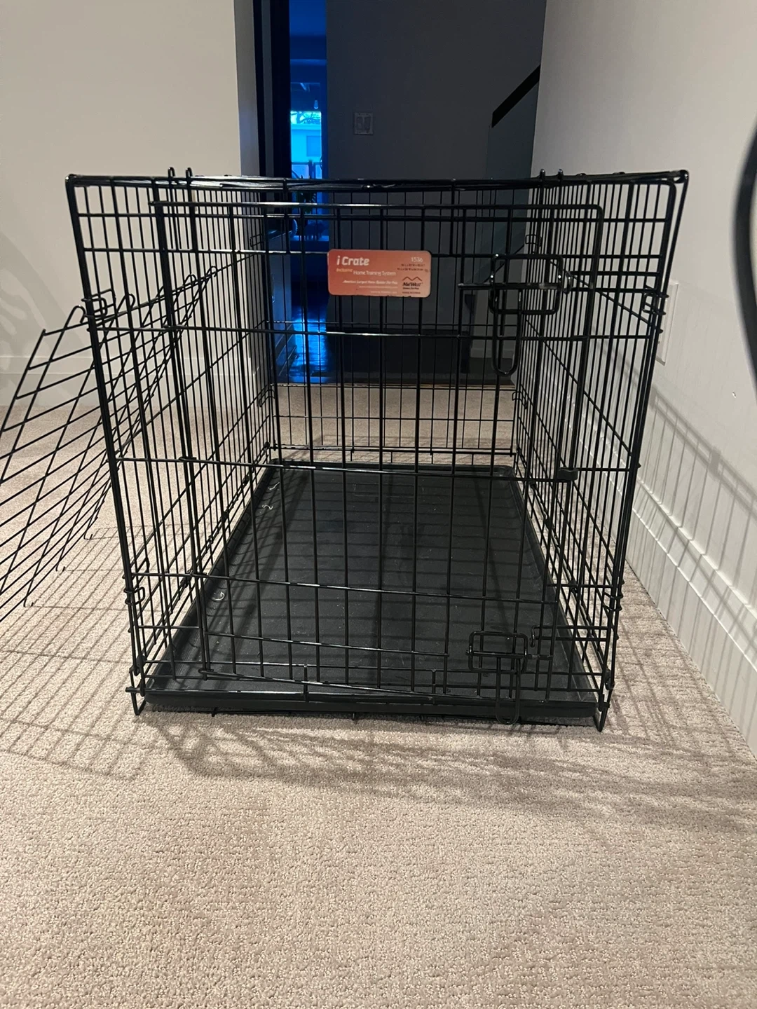 Selling a gently used iCrate dog crate in black. It's in great shape and ready for a new furry friend! It's perfect for house training or providing a safe space for your dog. The crate is easy to assemble and disassemble for storage or travel. The crate includes a tray.