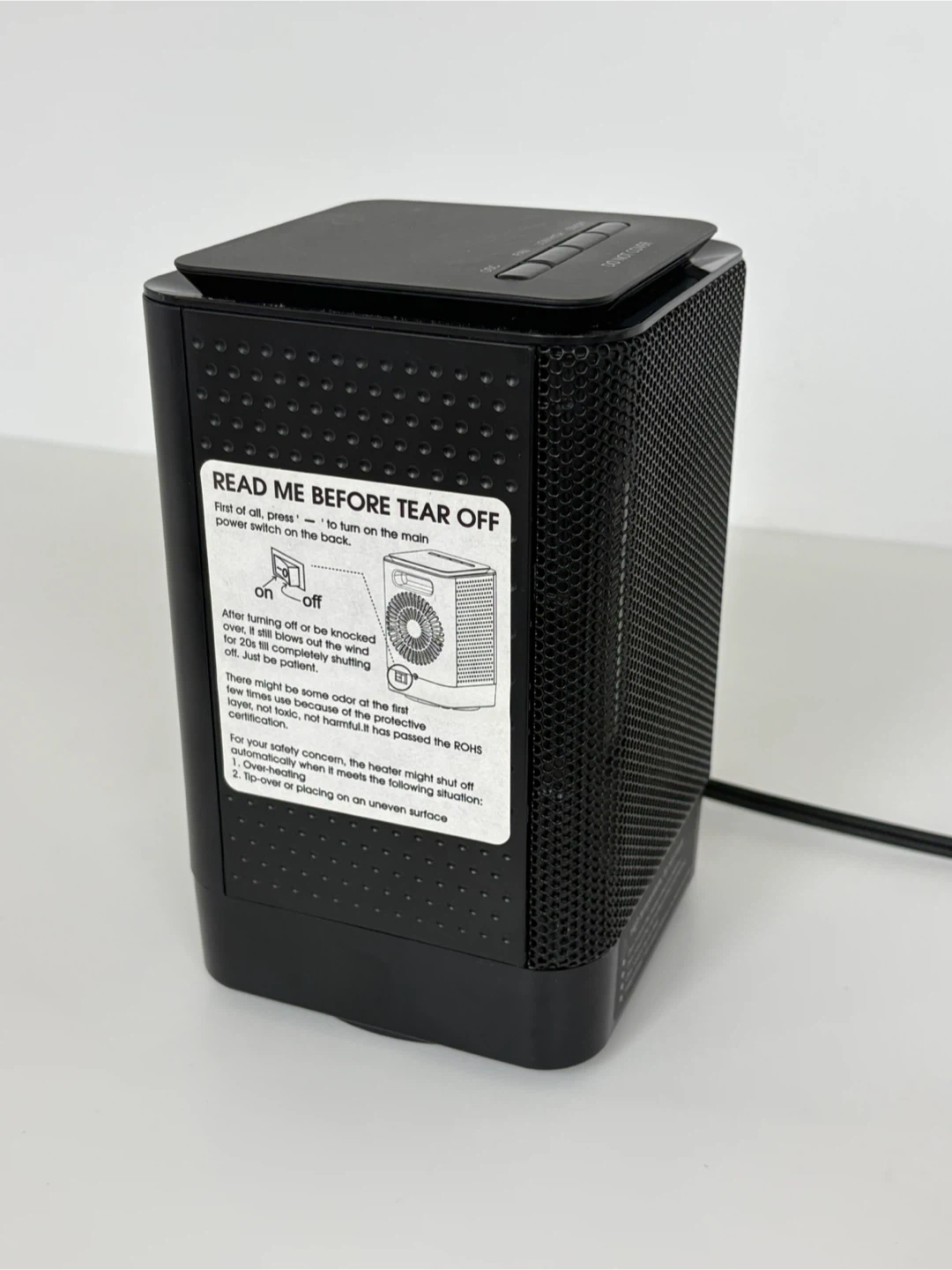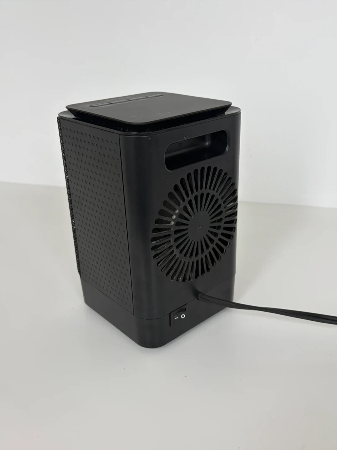 Small and simple, has a spinning mode, cool (fan) and warm/hot mode (heater).