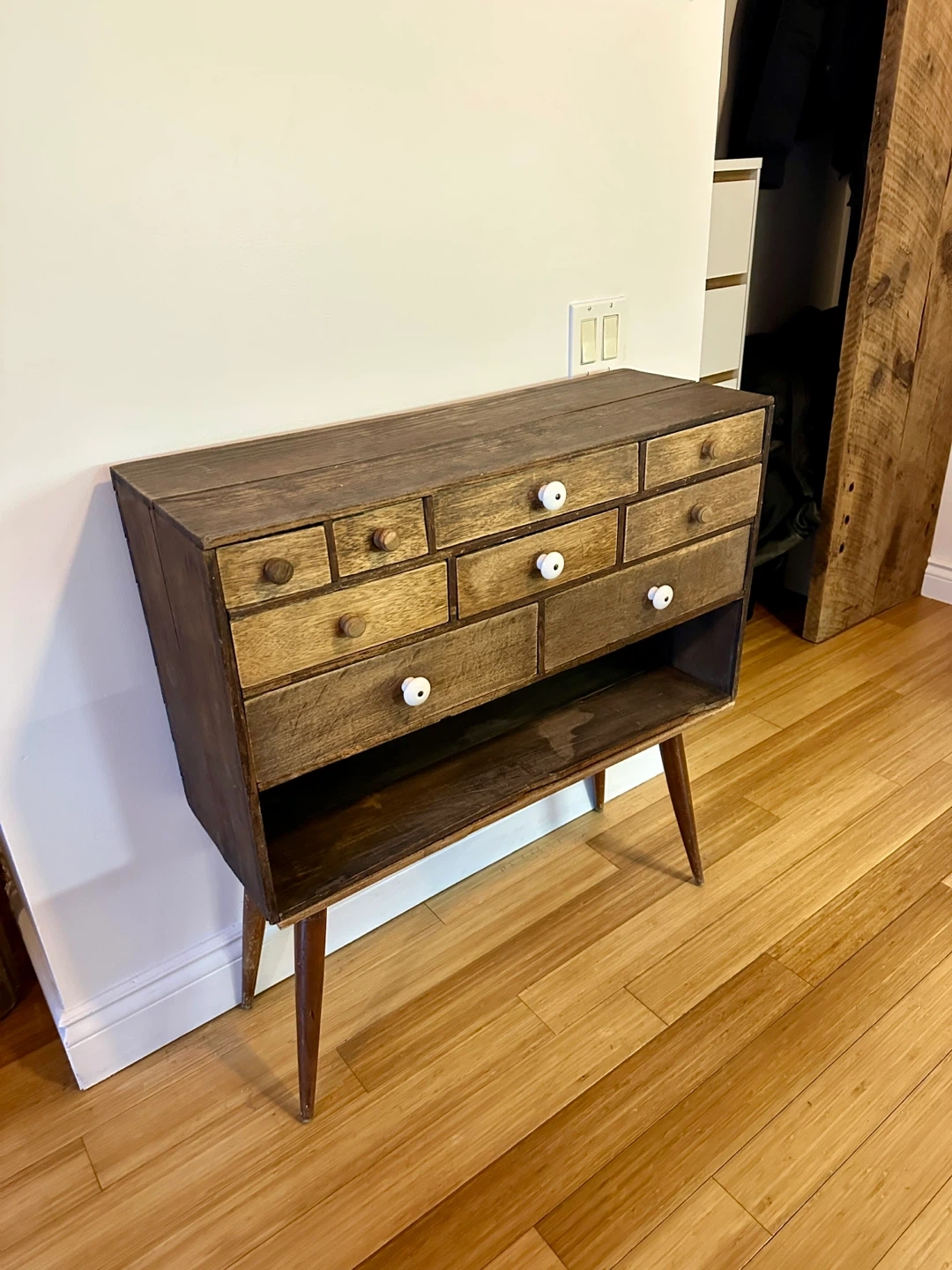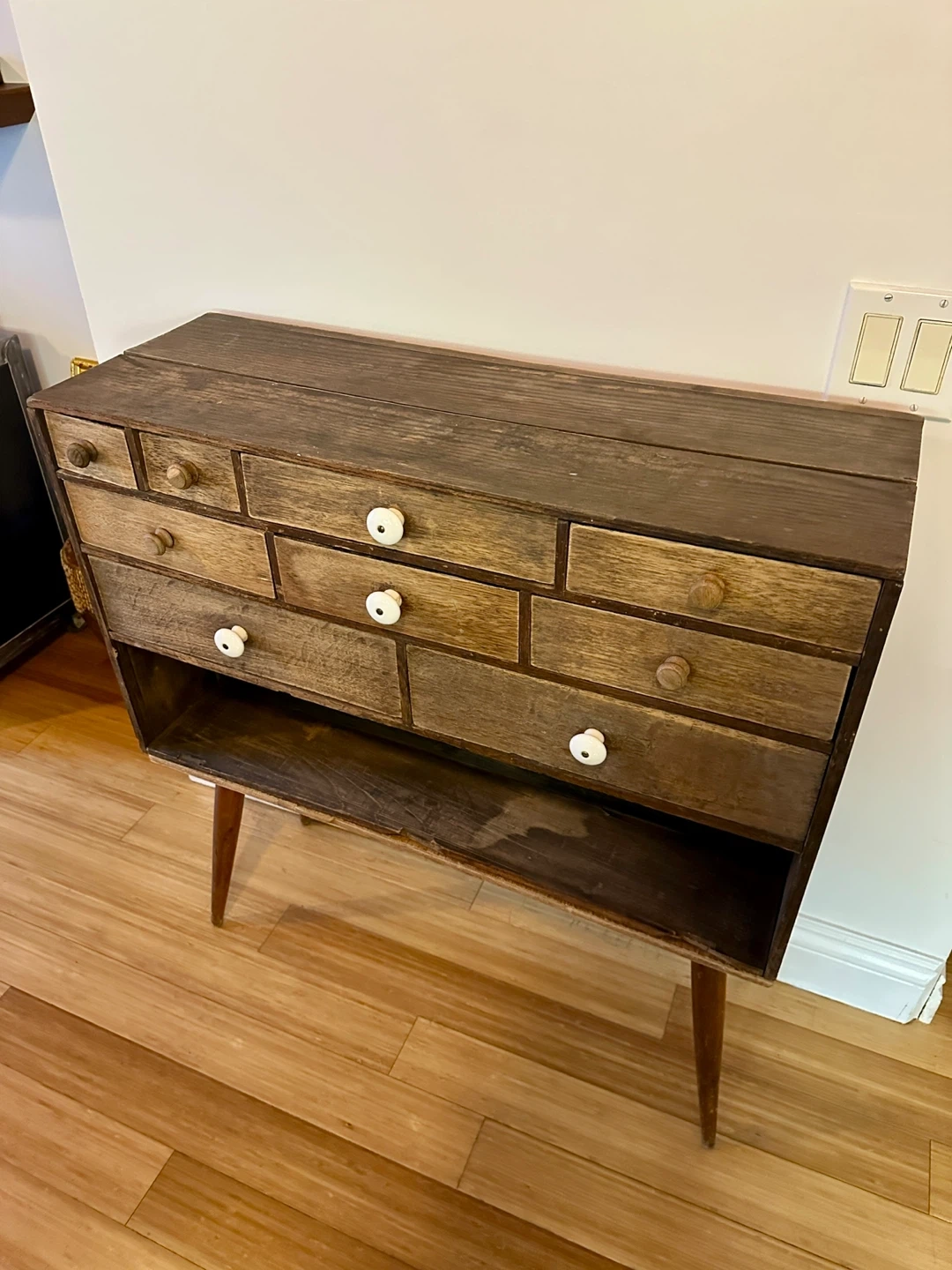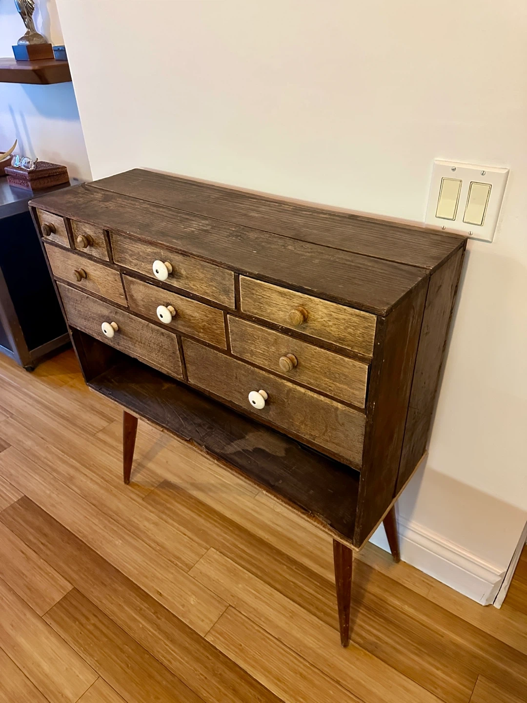 A super cool apothecary drawer unit. Its a unique hand made piece and great for vintage rustic decor.