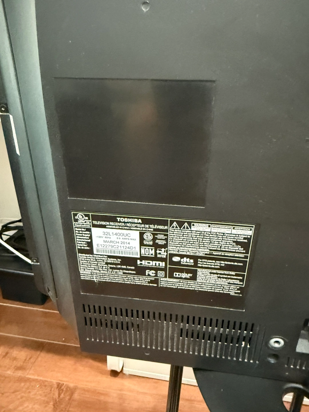 Used Toshiba 32-inch LCD HDTV. Includes remote. Features several input options, including HDMI and component video. Good condition.