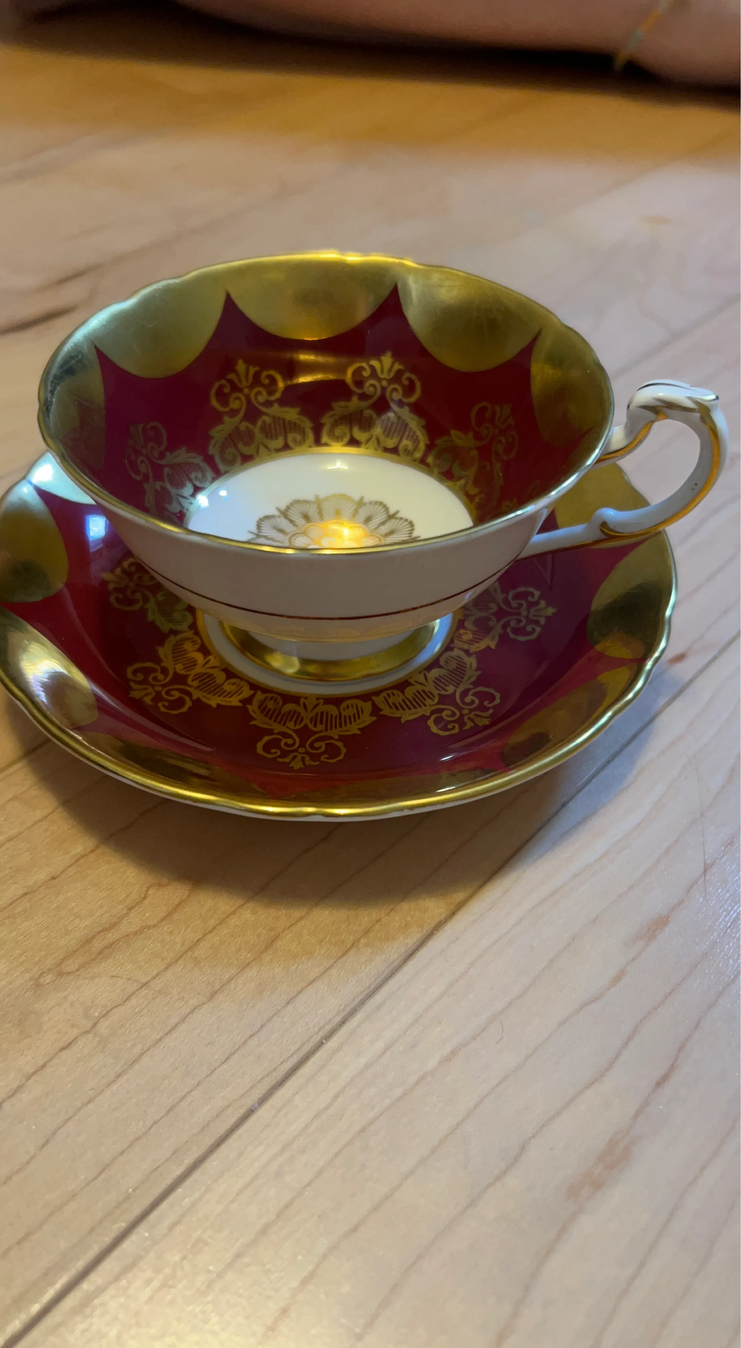 Vintage Red and Gold Teacup and Saucer