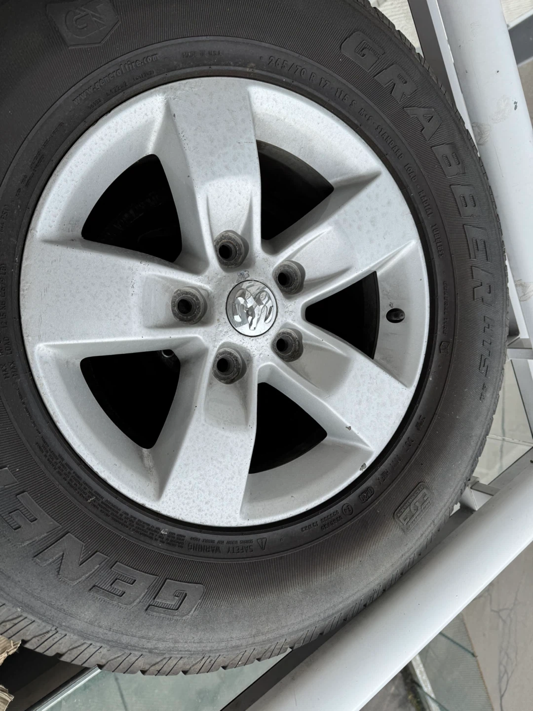 4 Ram tires. This is a single Grabber AT2 tire and rim. Tire size is 265/70R17. It's a standard load radial tire with M+S rating.