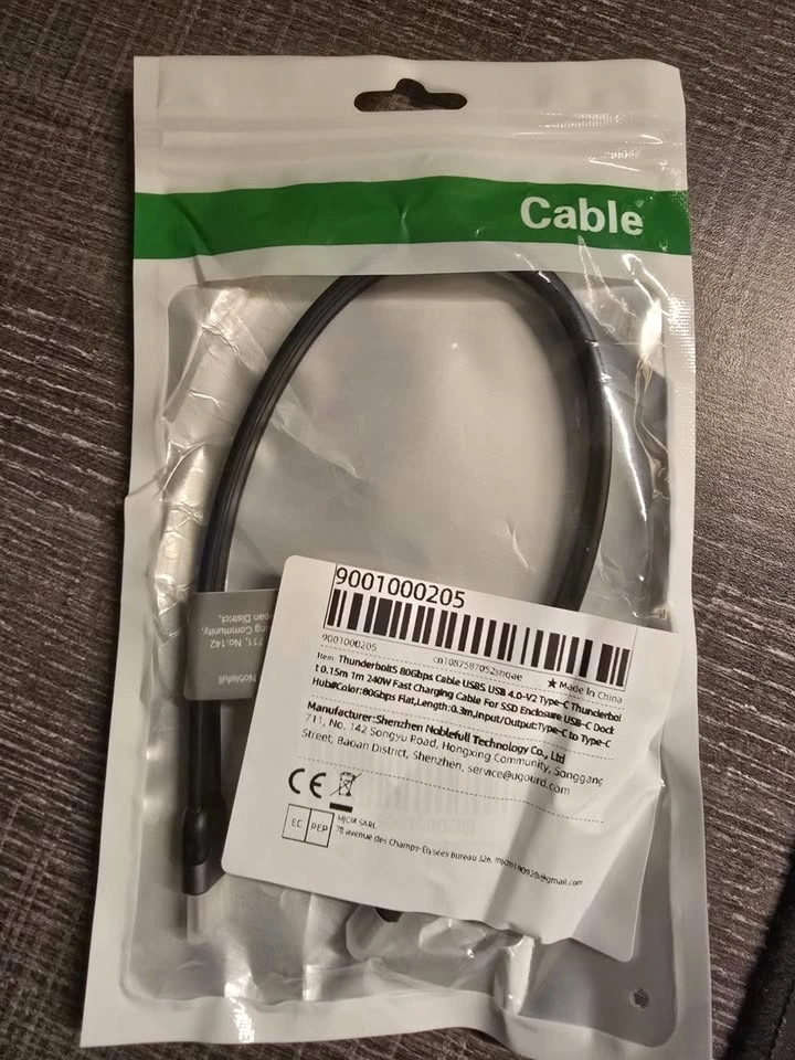 Brand new Thunderbolt 5 passive flat cable, 0.3m length. It's compatible with all Type-C ports for high-power charging (up to 240W PD), ultra-high-speed data transfer (80Gbps, backward compatible with Thunderbolt 4/3 and USB4), and ultra-high-definition video (DP-ALT mode, up to 16K). Great for connecting hubs, external GPUs, hard drives, or expanding your screen. Cash preferred. PICK UP ONLY STRICTLY near Downtown Central Park. No lowballing or trades, please.