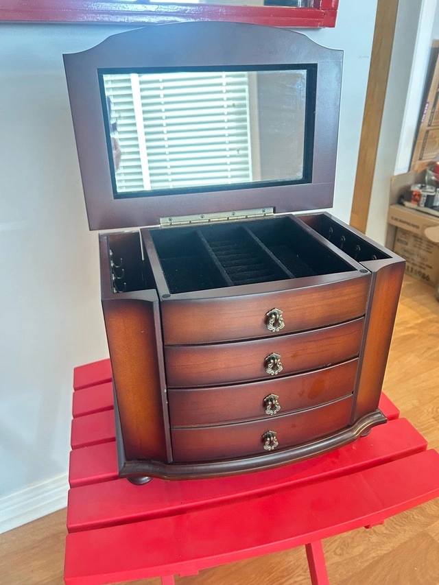 Very good condition. Lots of room to store rings, watches, earrings, and necklaces, etc.