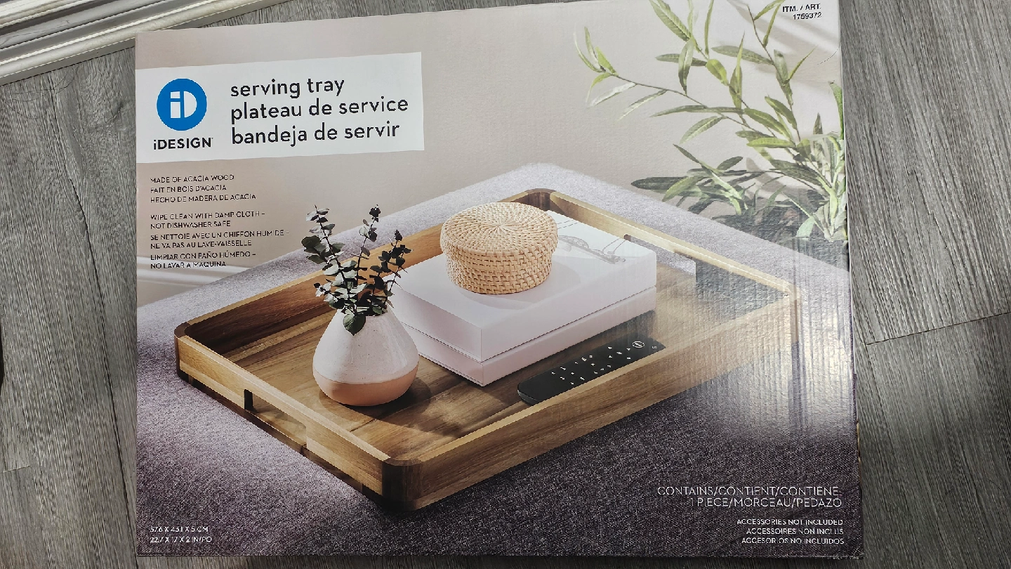 Selling an iDesign serving tray - made of acacia wood. It's in great condition and ready to use for your next gathering! The tray is 57.6 x 43.1 x 5 cm (22.7 x 17 x 2 inches).