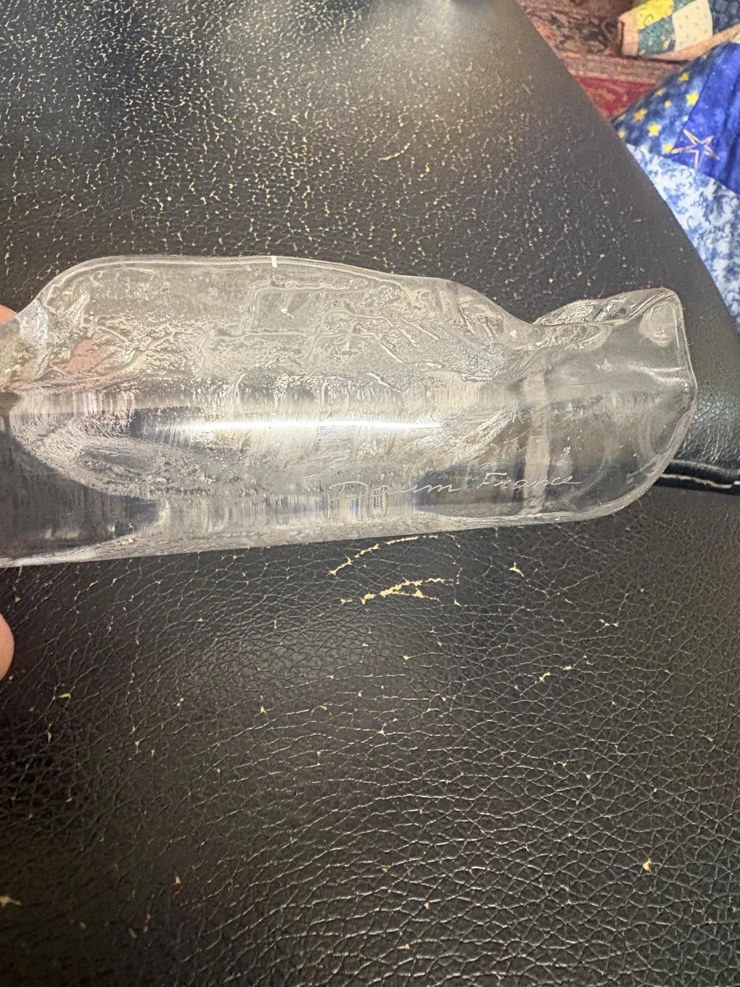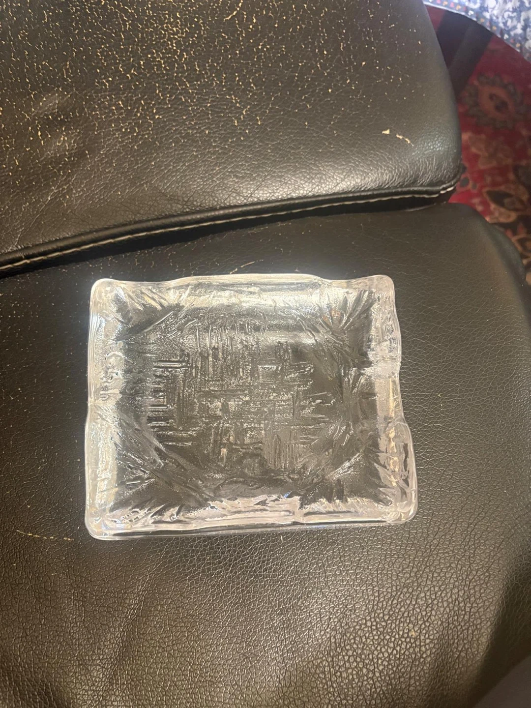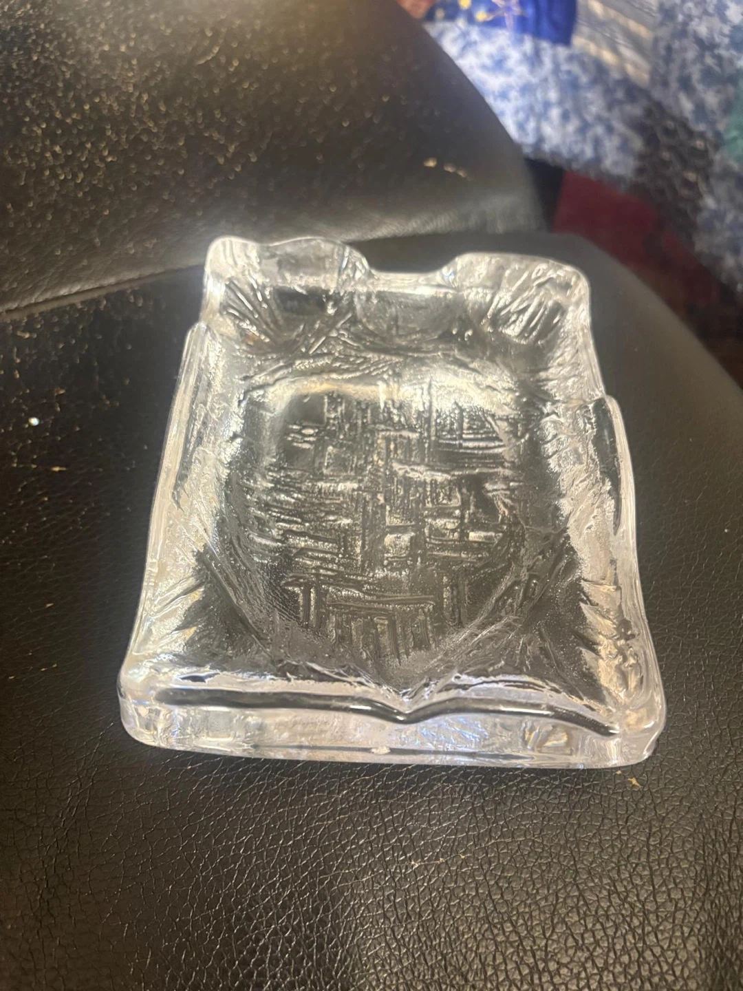 This is a beautiful crystal ashtray from Daum. It has a unique textured design etched into the glass. Perfect for a collector or as a stylish addition to a coffee table.