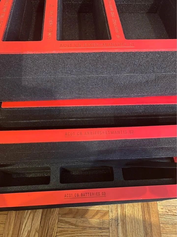 I have 4 gently used inserts for cameras accessories for Nanuk or pelican plastic cases or can be used for as carry trays. They are very sturdy and clean. Can also be used for specific tools, jewelry, toys, collectibles, paperwork, etc. You are welcome to check them out; they are marked AC01.CB (check pics). $25.00 each or 80.00 for all 4 inserts !!!!!