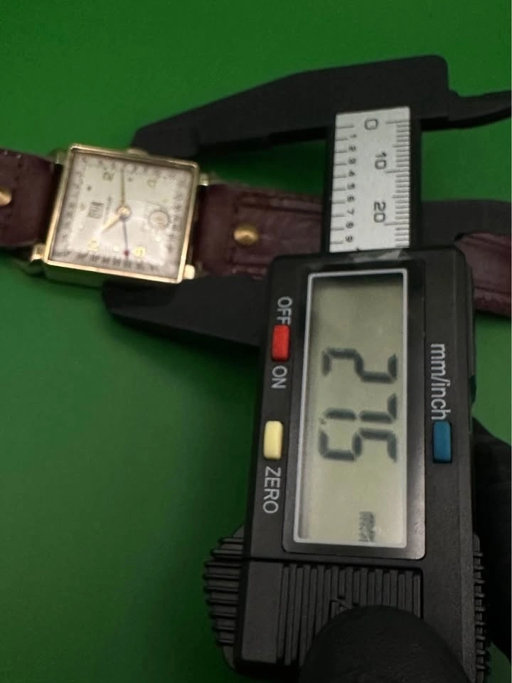 • Case size: approx. 25 mm wide (excluding crown), square (see caliper photos)