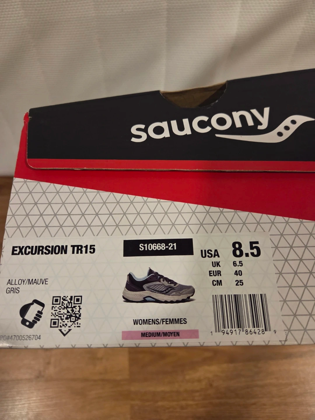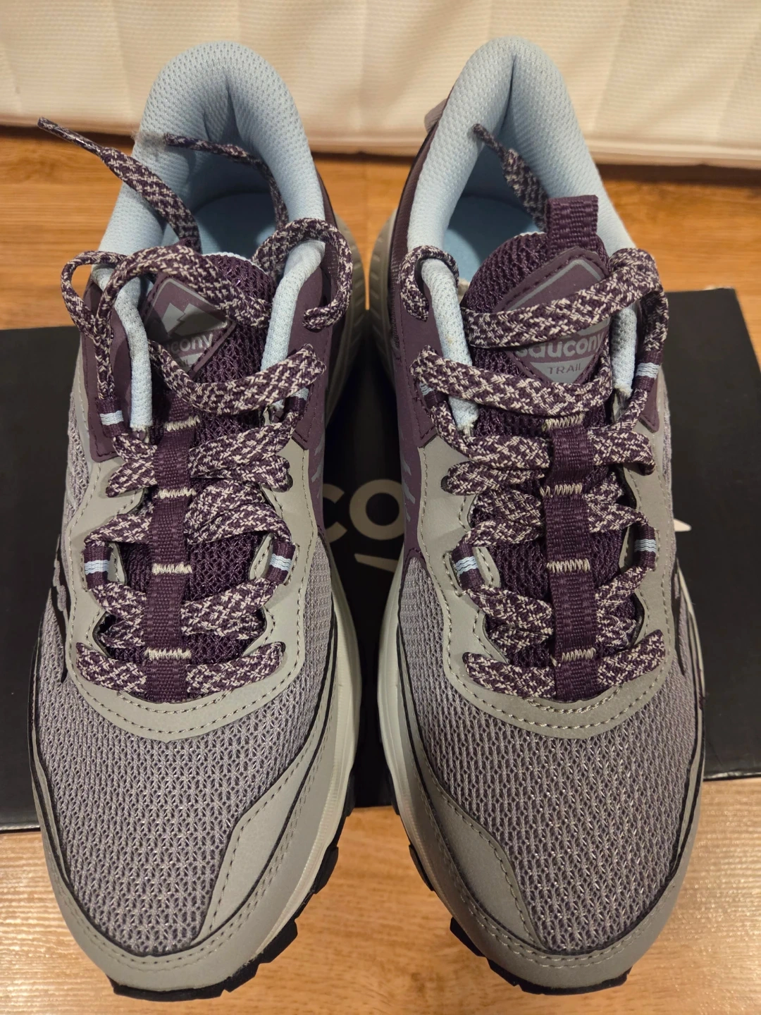 Saucony Excursion TR15 trail running shoes in a grey and mauve colourway. Women's size 8.5. brand new in box!