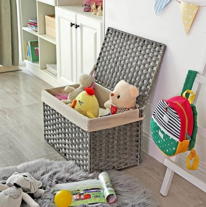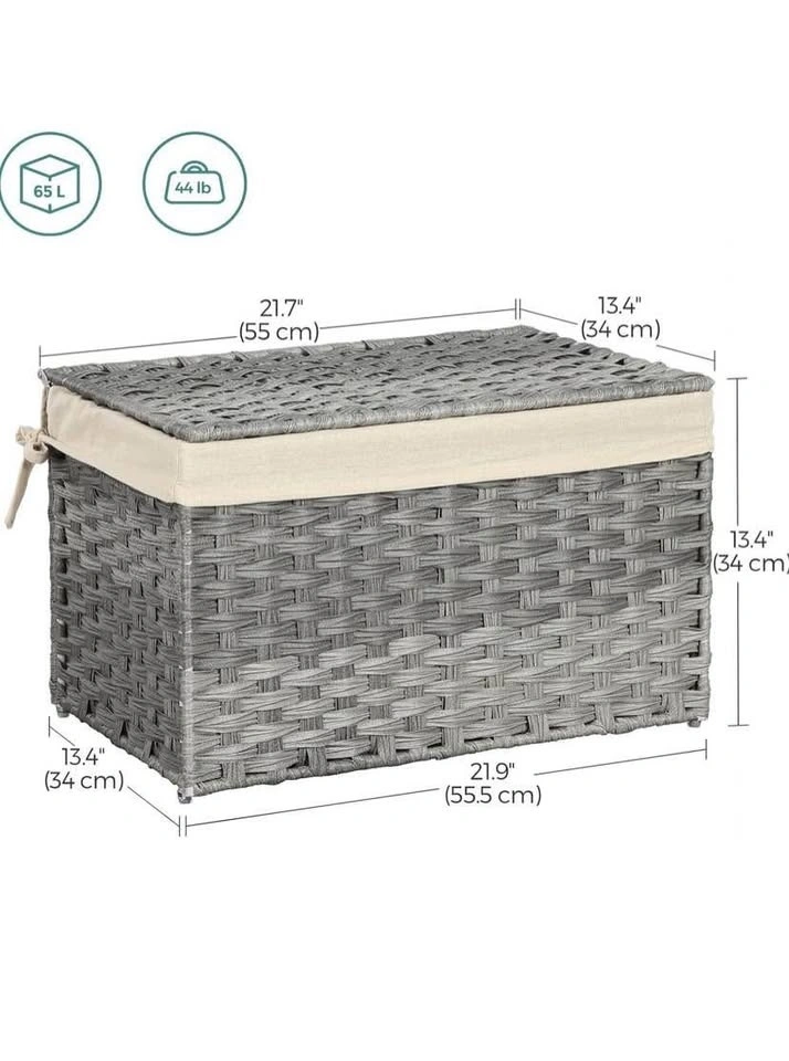 SONGMICS 65L Storage Basket with Lid - Foldable Blanket Bin, Gra