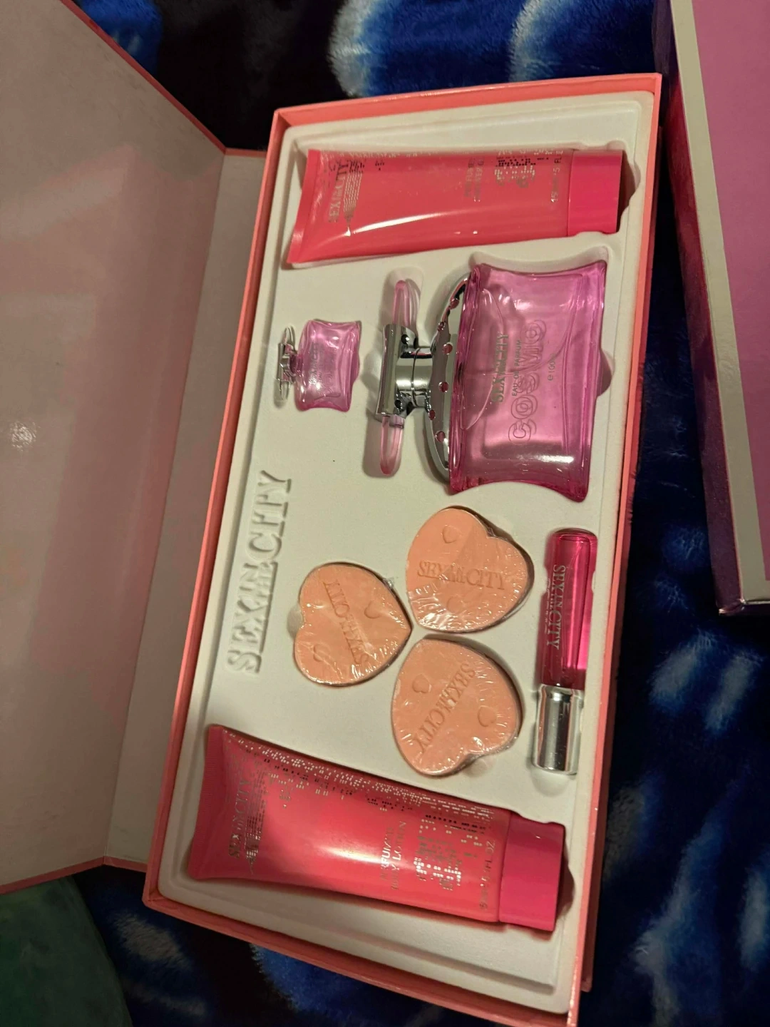 This Sex and the City gift set includes a perfume bottle, rollerball, body lotion, and lip gloss. It's a great collection for any fan of the show!