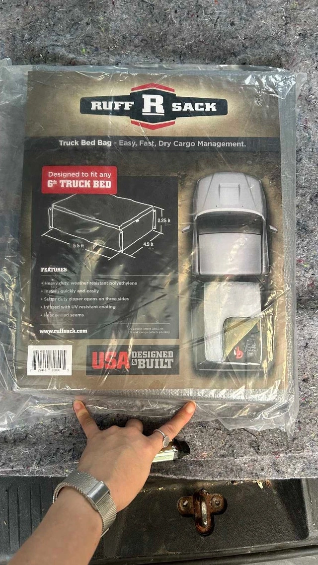 This Ruffsack truck cargo bag is designed to fit a 6ft truck bed and provide a complete enclosure for your cargo. It's made from heavy-duty, weather-resistant polyethylene with a UV-resistant coating to protect your gear from the elements. The super-duty zipper opens on three sides for easy access, and it features eight tie-down grommets and locking zippers for secure installation. This Ruffsack is in excellent condition and ready to keep your cargo safe and dry. A new one retails for $200, but I'm asking $30. Pick-up is at Keele & Beechborough. Cash only.