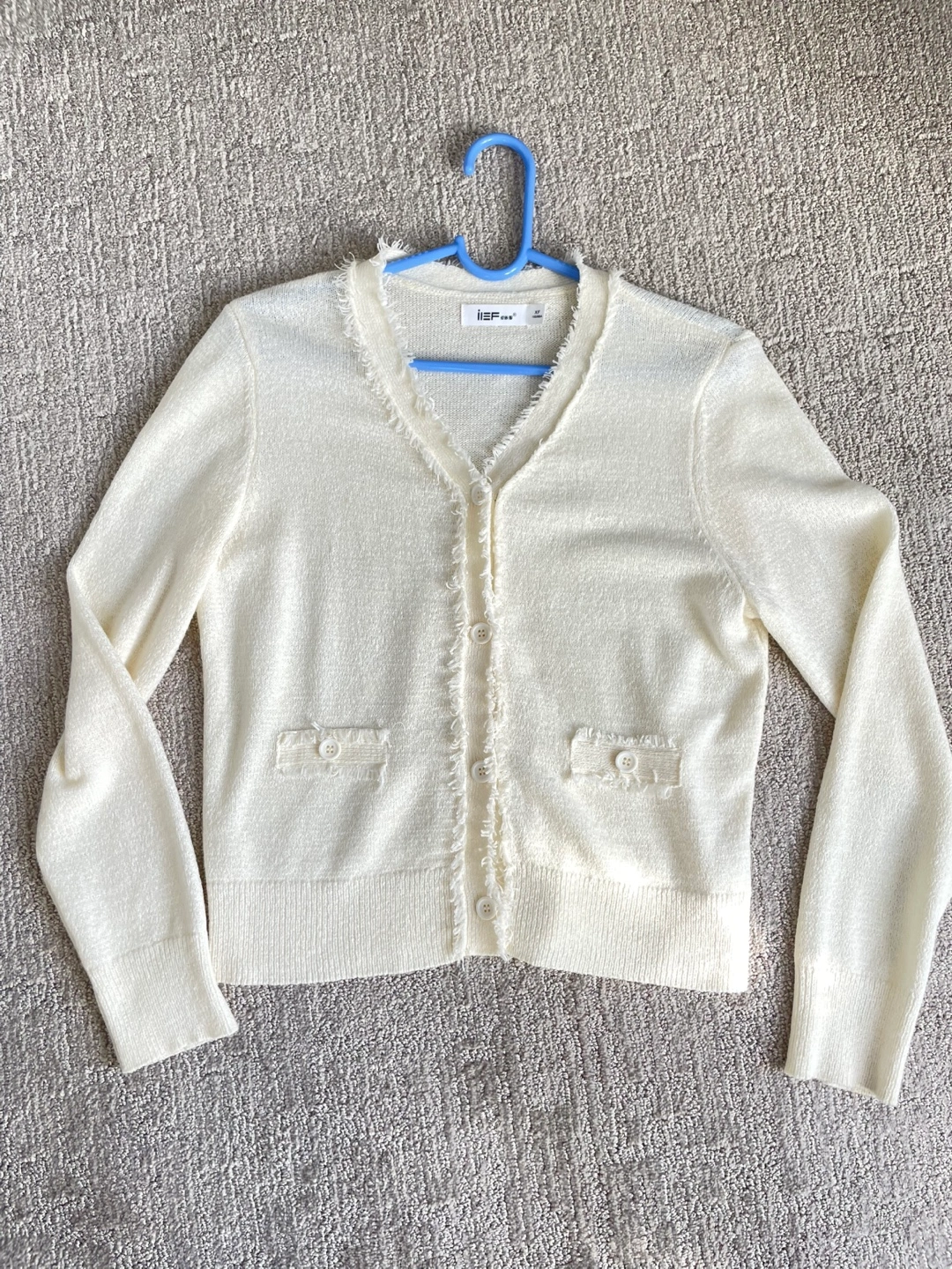 A cute, cream-coloured cardigan from IEFIEL! It's a size XF. Perfect for layering or wearing on its own Hamilton