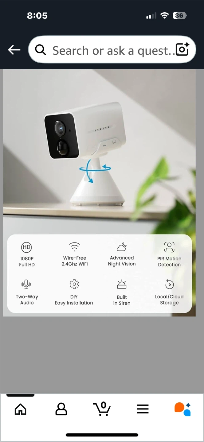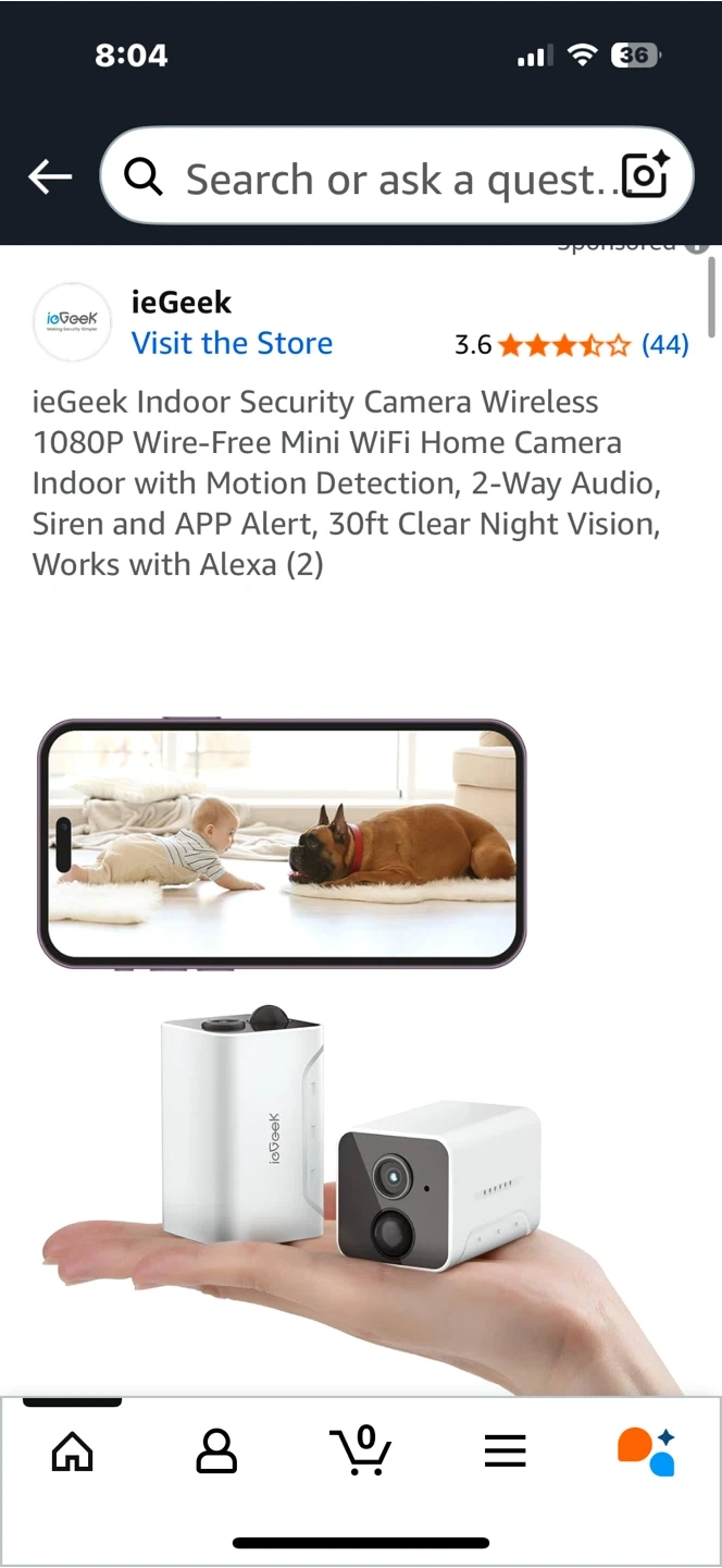 Selling an ieGeek indoor security camera. It's a 1080P wire-free mini WiFi home camera with motion detection, 2-way audio, siren, and app alert. It also has 30ft clear night vision and works with Alexa