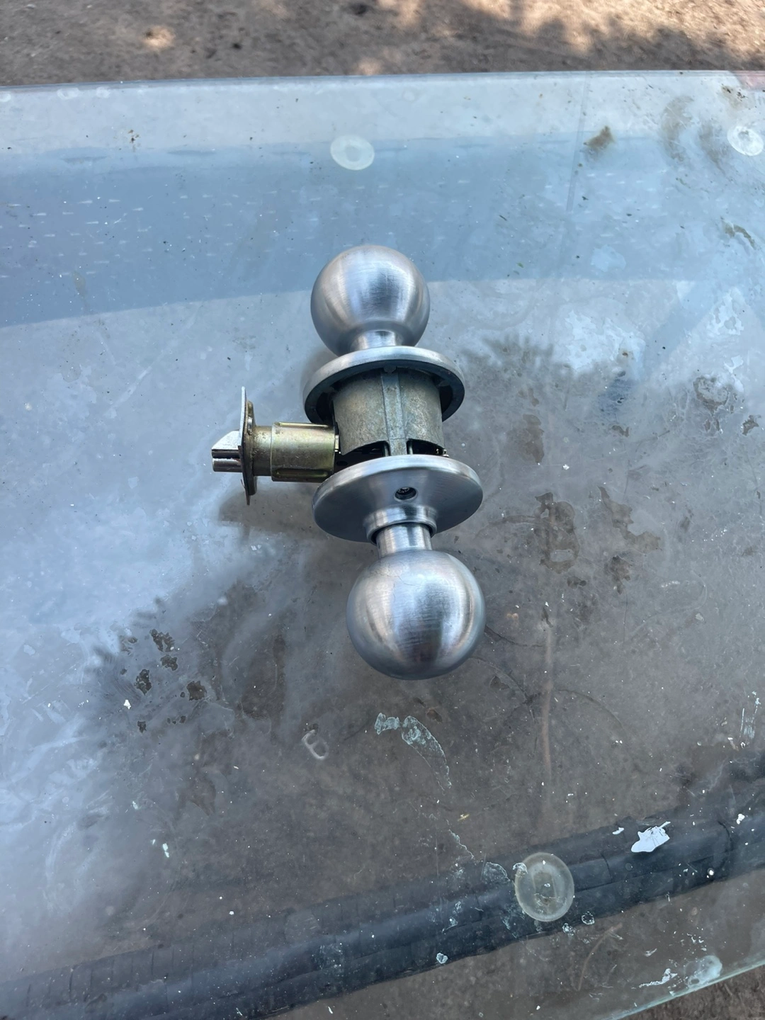 Selling a used silver door knob. It's in good working condition and ready to be installed!
