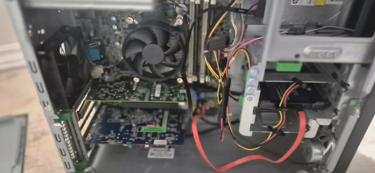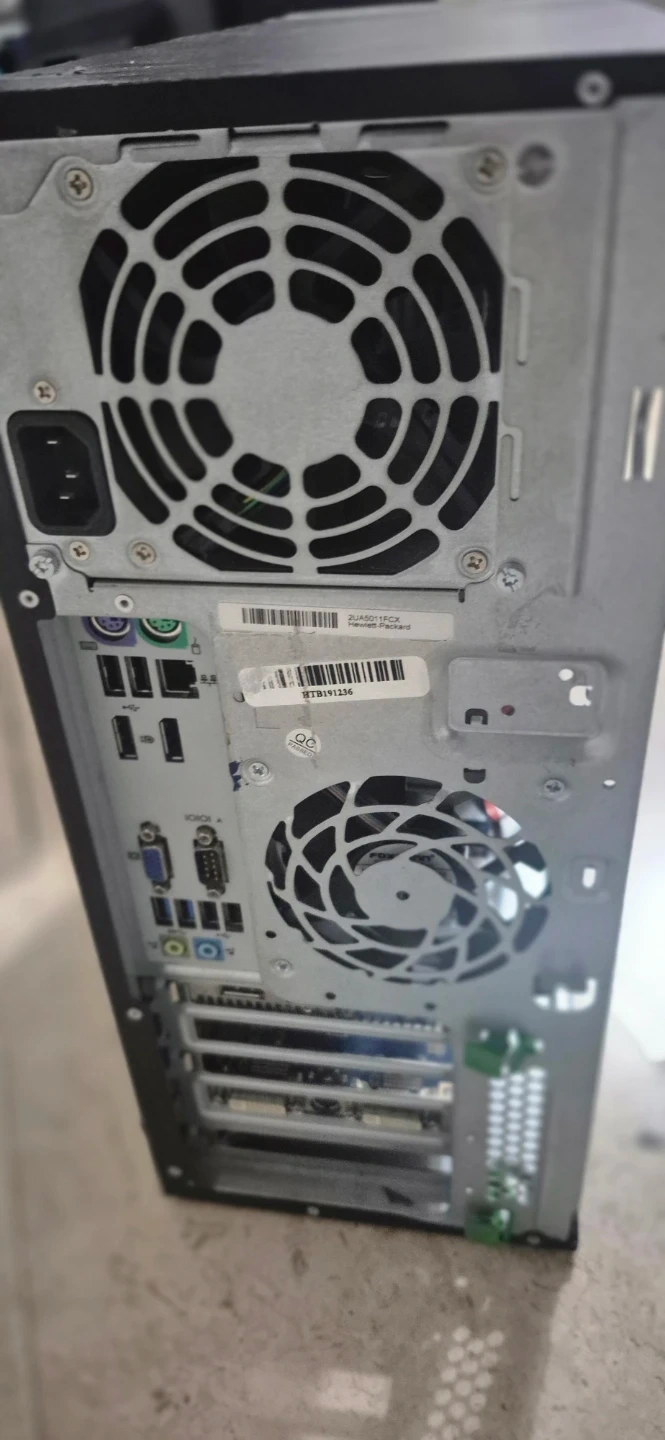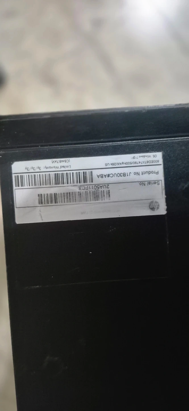 HP desktop computer tower, model number J1B30UC#AABA. It runs on Windows 7 SP1. This is a tower only; monitor and other accessories are not included