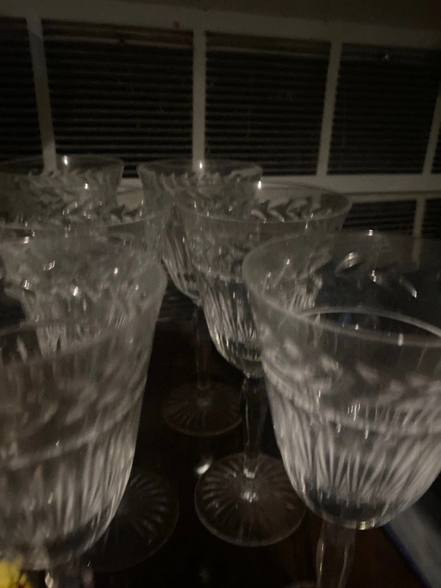 Add a touch of elegance to your dining experience with this set of crystal stemware. These glasses feature a beautiful cut-glass design that catches the light and elevates any occasion. These are used, but in great condition, ready to be the stars of your next dinner party. If the ad is up, they're available! Cash accepted.