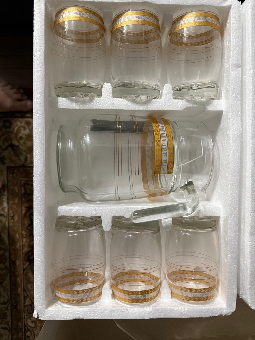 7-Piece Glass Pitcher and Tumbler Set with Gold Accents