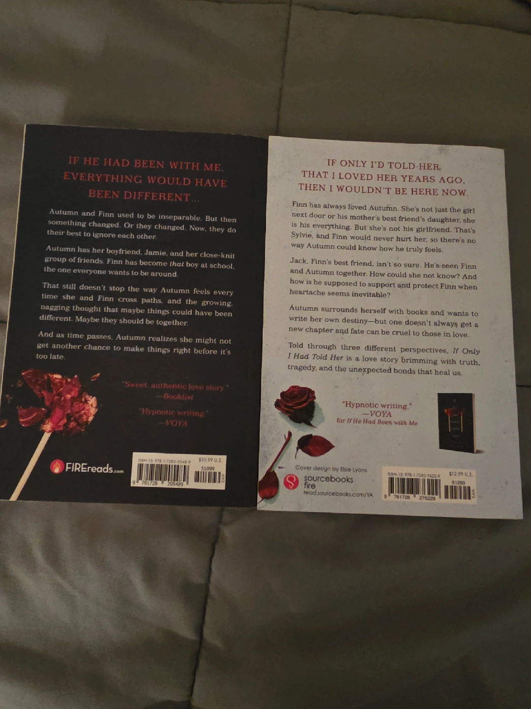 Selling a set of two books by Laura Nowlin: If He Had Been With Me and If Only I Had Told Her. They are both New York Times bestsellers! The original price for each book was $18.10 the books are extremely lightly used there's no damage to either at all