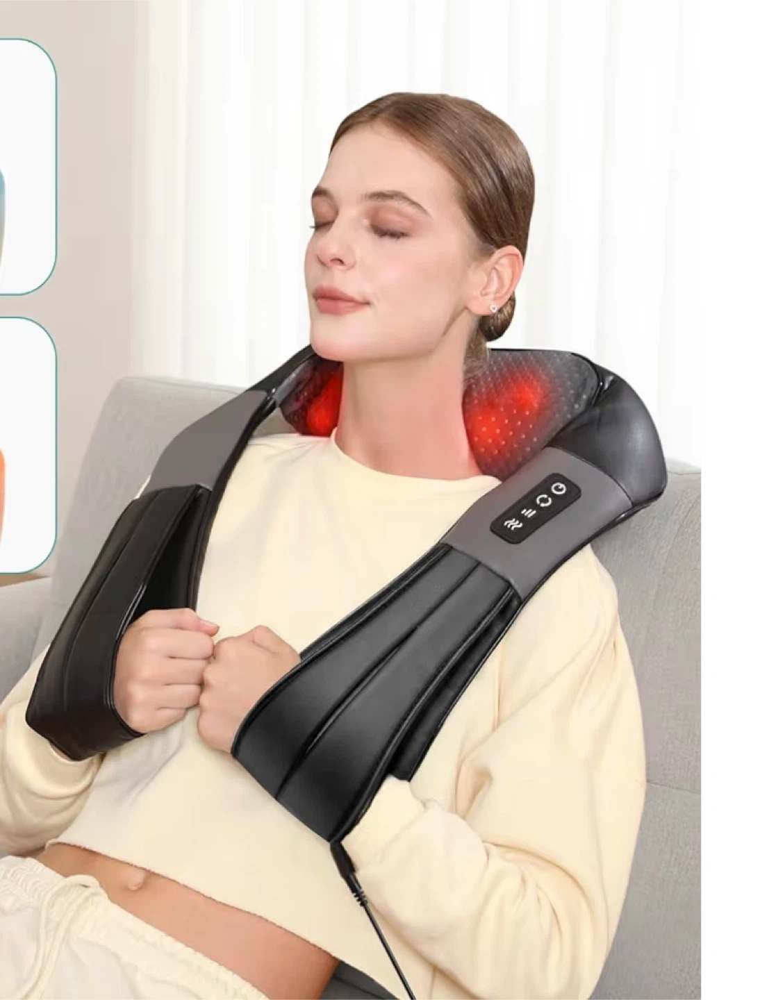 Easy and Safe to Use. Built-in infrared advanced soothing heat function, the massager will improve your blood circulation, and it is settled within 15 minutes overheating auto-shut off protection. (Can be turned off manually)