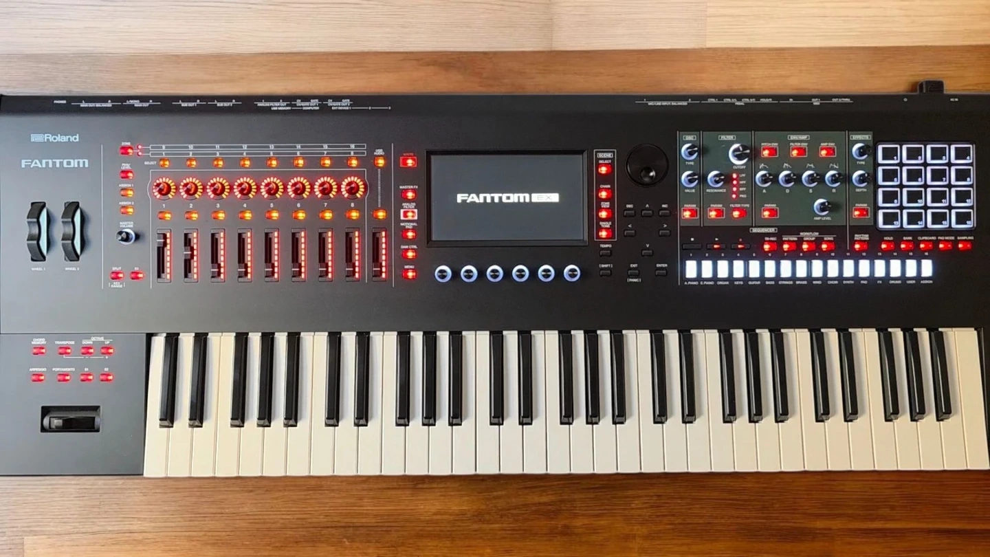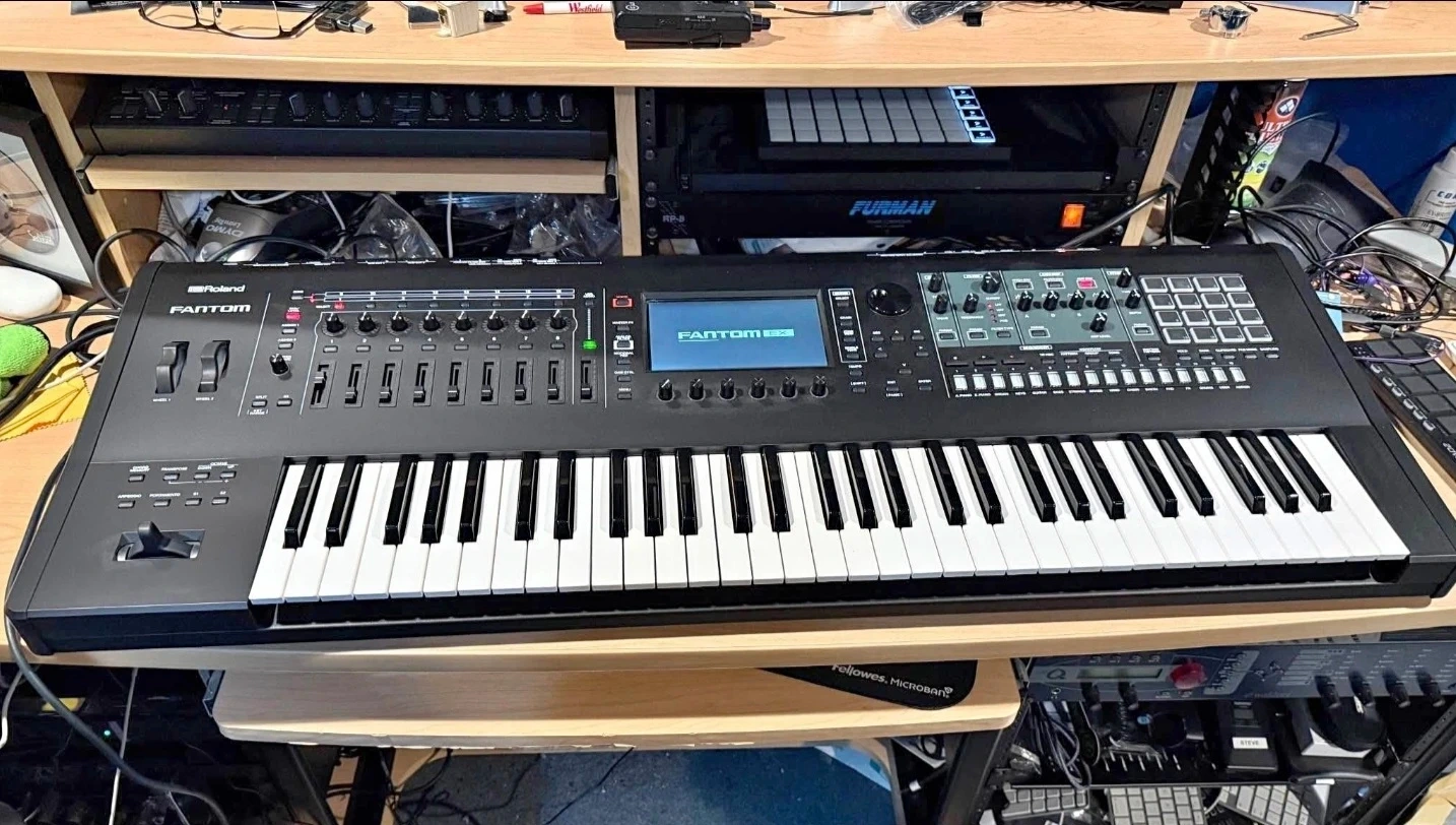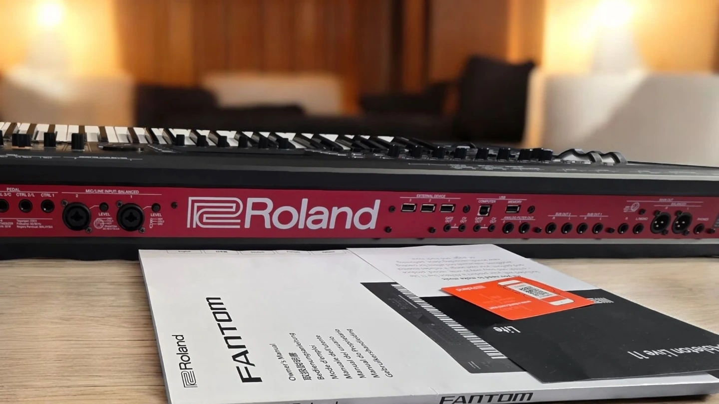 Roland FANTOM synthesizer keyboard. Includes owner's manual and Ableton Live 11 Lite software. This workstation keyboard offers a full set of controls for music production and performance.