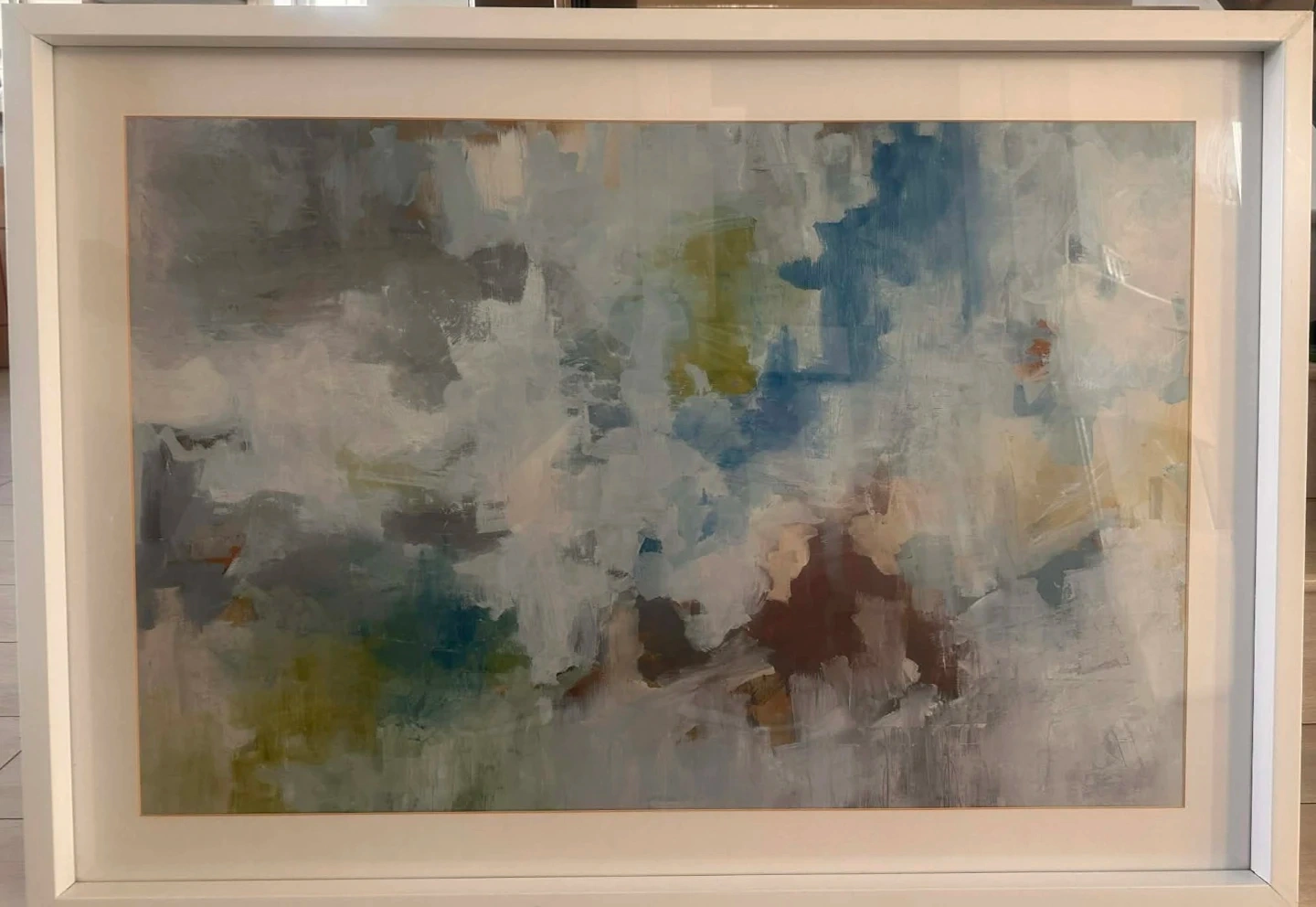 This is a framed abstract painting. It features a colourful, textured design. Great for adding a pop of colour to any room! Red Abstract is 42 x 32 inches, the Bluish Art work 42 x 30. $45 for 2