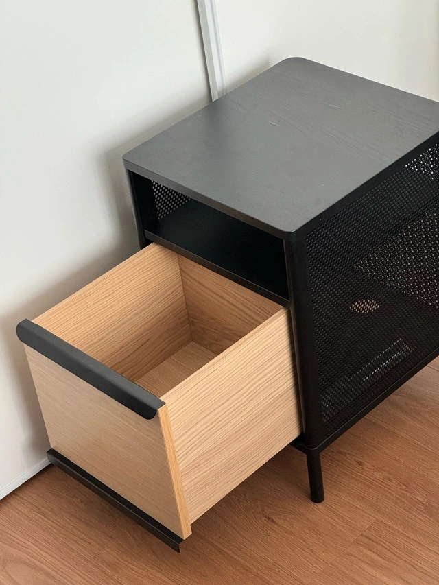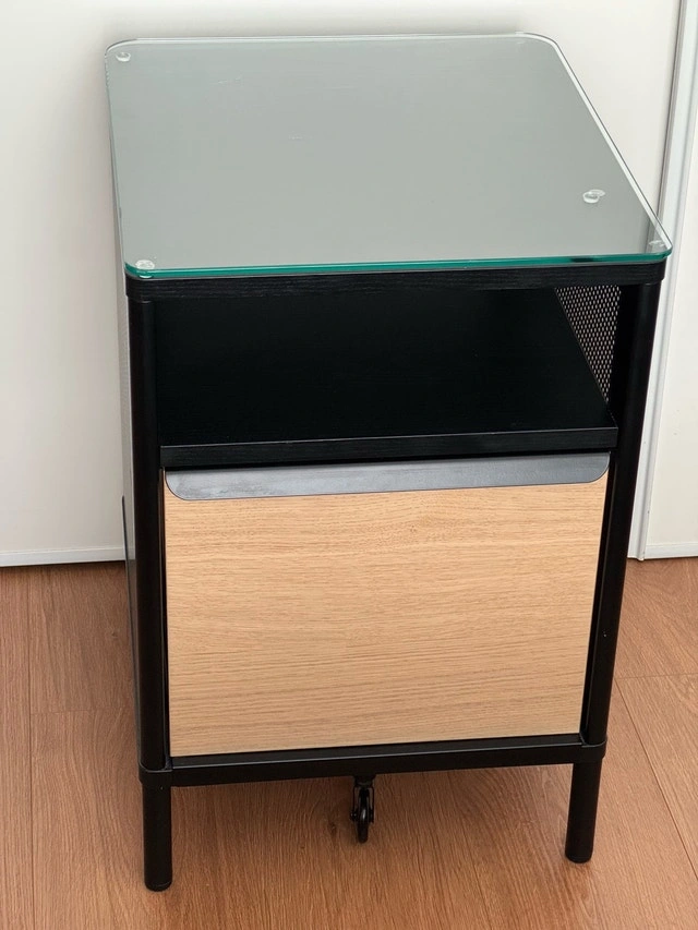 Tuck things away in your office or bedroom with this stationary IKEA Bekant Storage Unit. It does not roll. Details: WDH 41x45x61 cm. Ash veneer drawer and oak veneer drawer front. Includes glass top. Pickup in Wellesley & Sherbourne. Cash/e-transfer accepted.