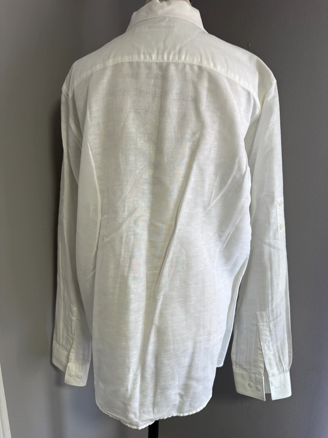Calvin Klein White Linen Blend Button-Up Shirt - Size L