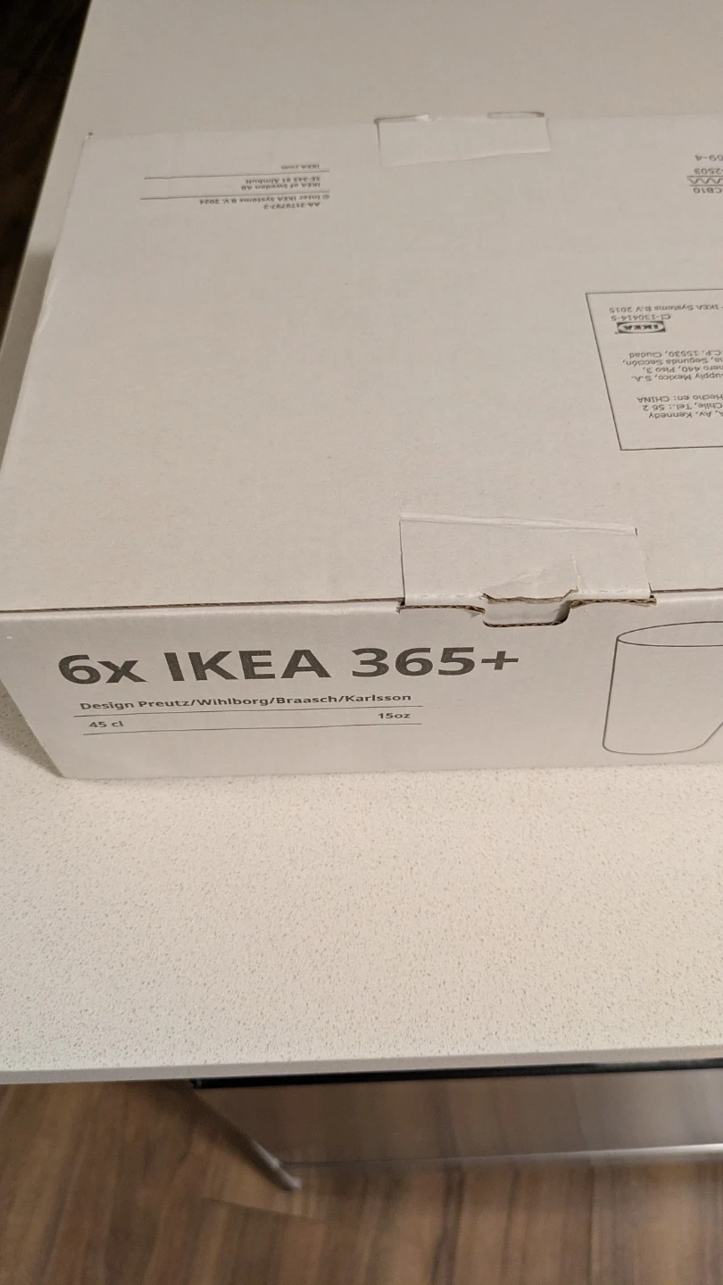 Selling a set of 6 IKEA 365+ glasses. These glasses each hold 45 cl (15oz). They were designed by Preutz/Wihlborg/Braasch/Karlsson and come in the original box!