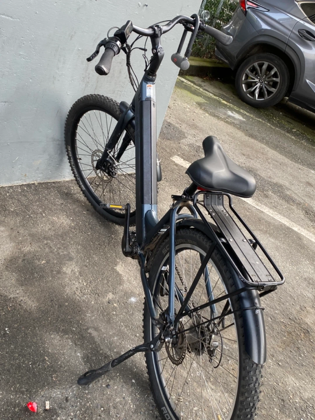 Electra electric bike with a rear rack. It's a step-through frame design. Good for commuting or leisurely rides. 27 half inch tire, comes with key and charger, excellent condition.