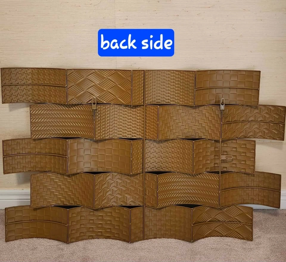 This is a beautiful geometric metal wall art piece. It adds a modern and stylish touch to any room. Perfect for living rooms, bedrooms, or entryways.