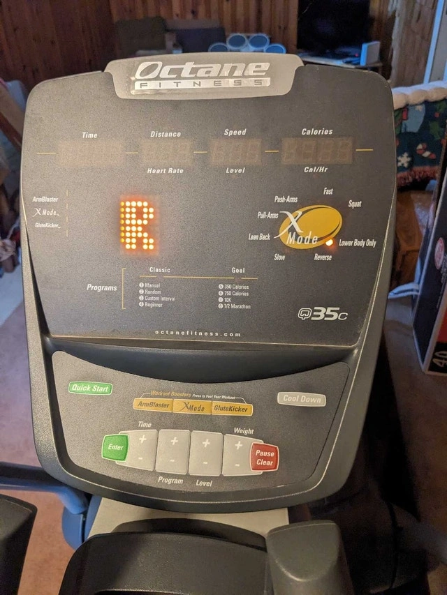 This Octane Fitness Q35c elliptical is in good condition. Please note that it is heavy and will require a pickup truck or a minivan with the seats removed for transport.