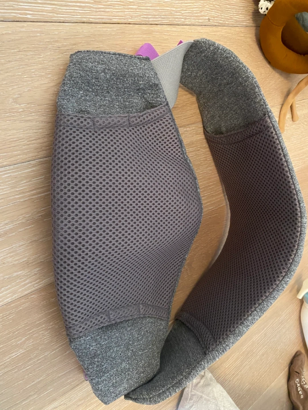 Adjustable band. On the inside of the band, you are able to insert warm or cold packs to support pain relief (see picture two)