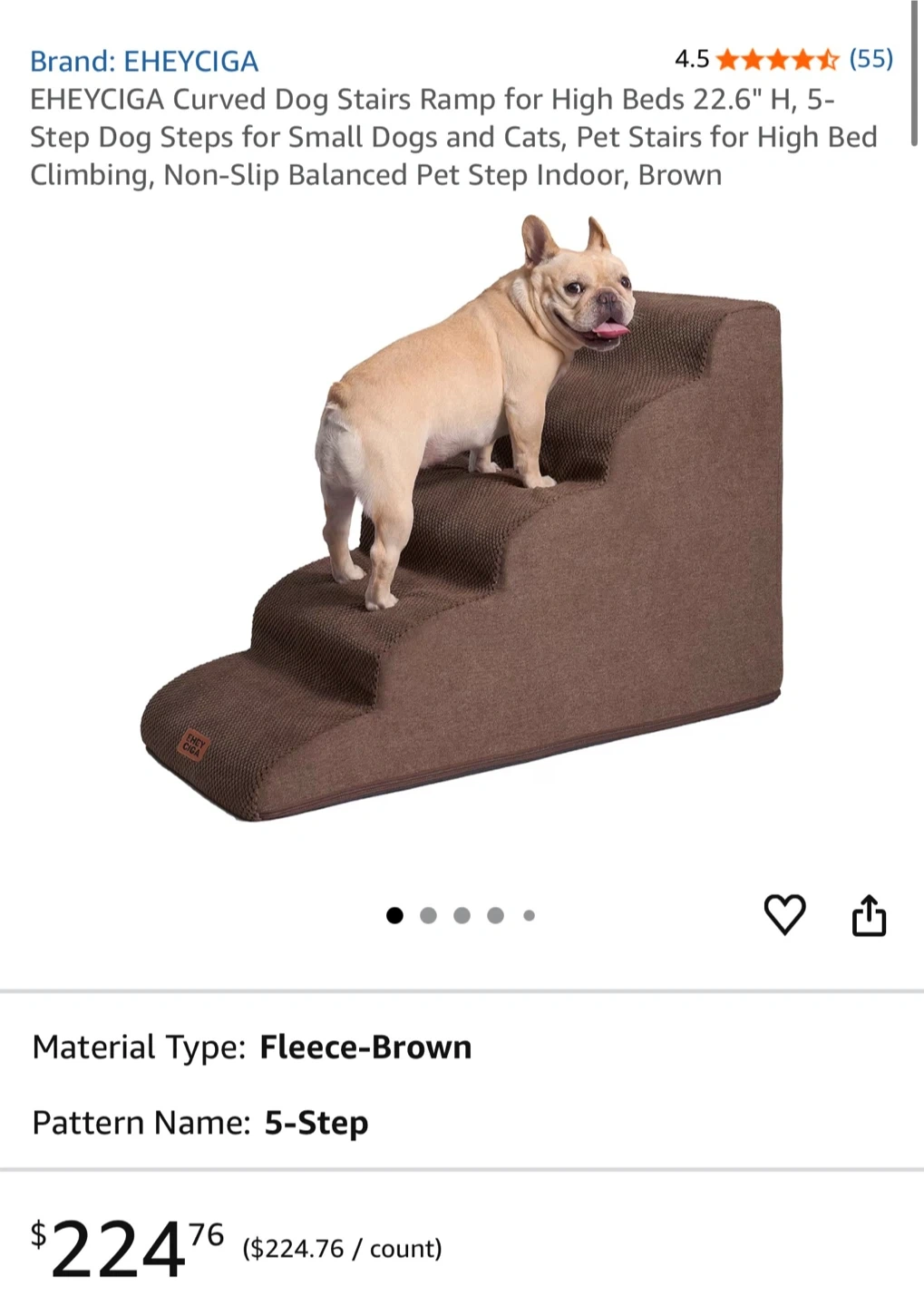 EHEYCIGA Curved Dog Stairs Ramp. 5-Step Dog Steps. Charcoal grey