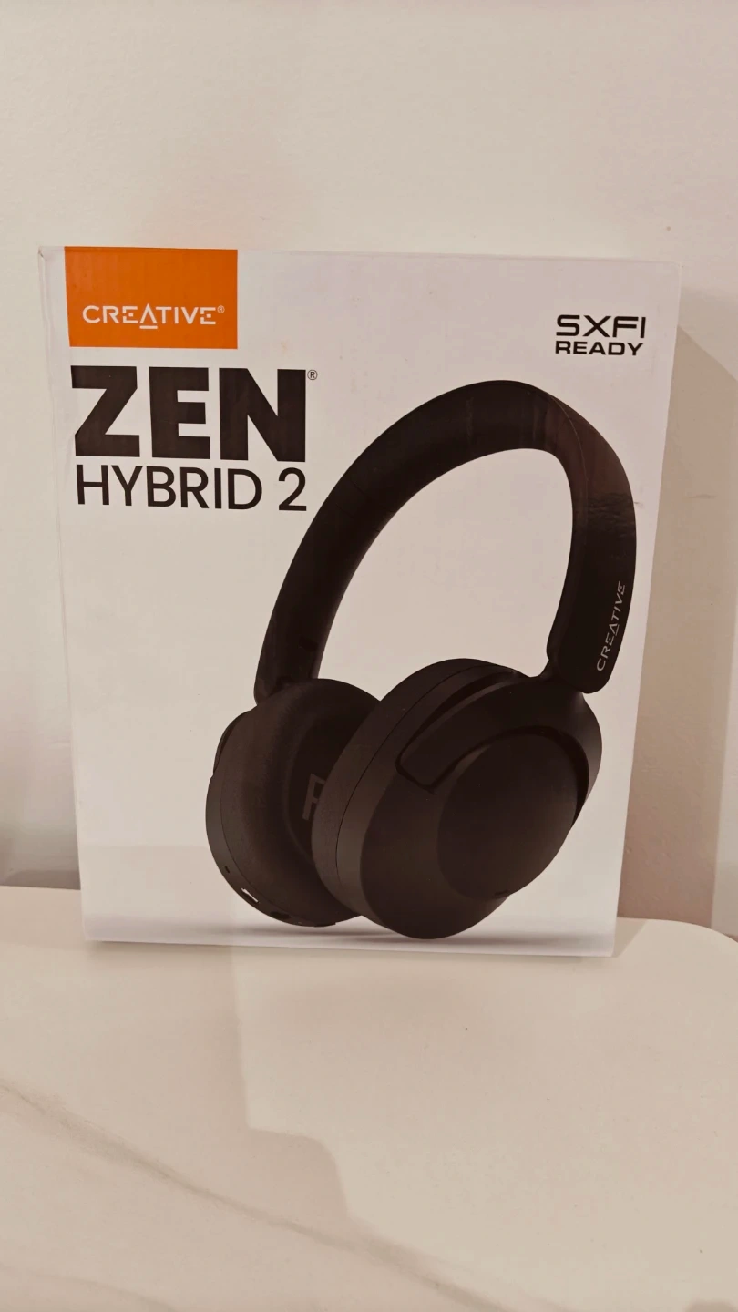 Experience immersive audio with these black Creative Zen Hybrid 2 over-ear headphones. They feature a foldable design for easy storage and portability. Connect wirelessly or with the included cable.Creative Zen Hybrid 2 over-ear headphones in white and tan. Includes original box and charging cable. Features SXFI Ready technology.