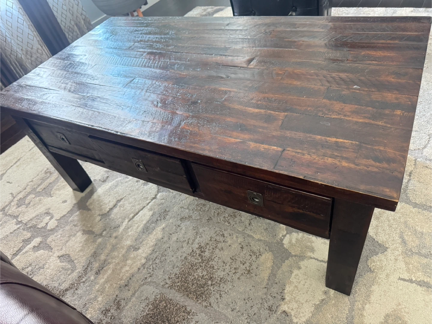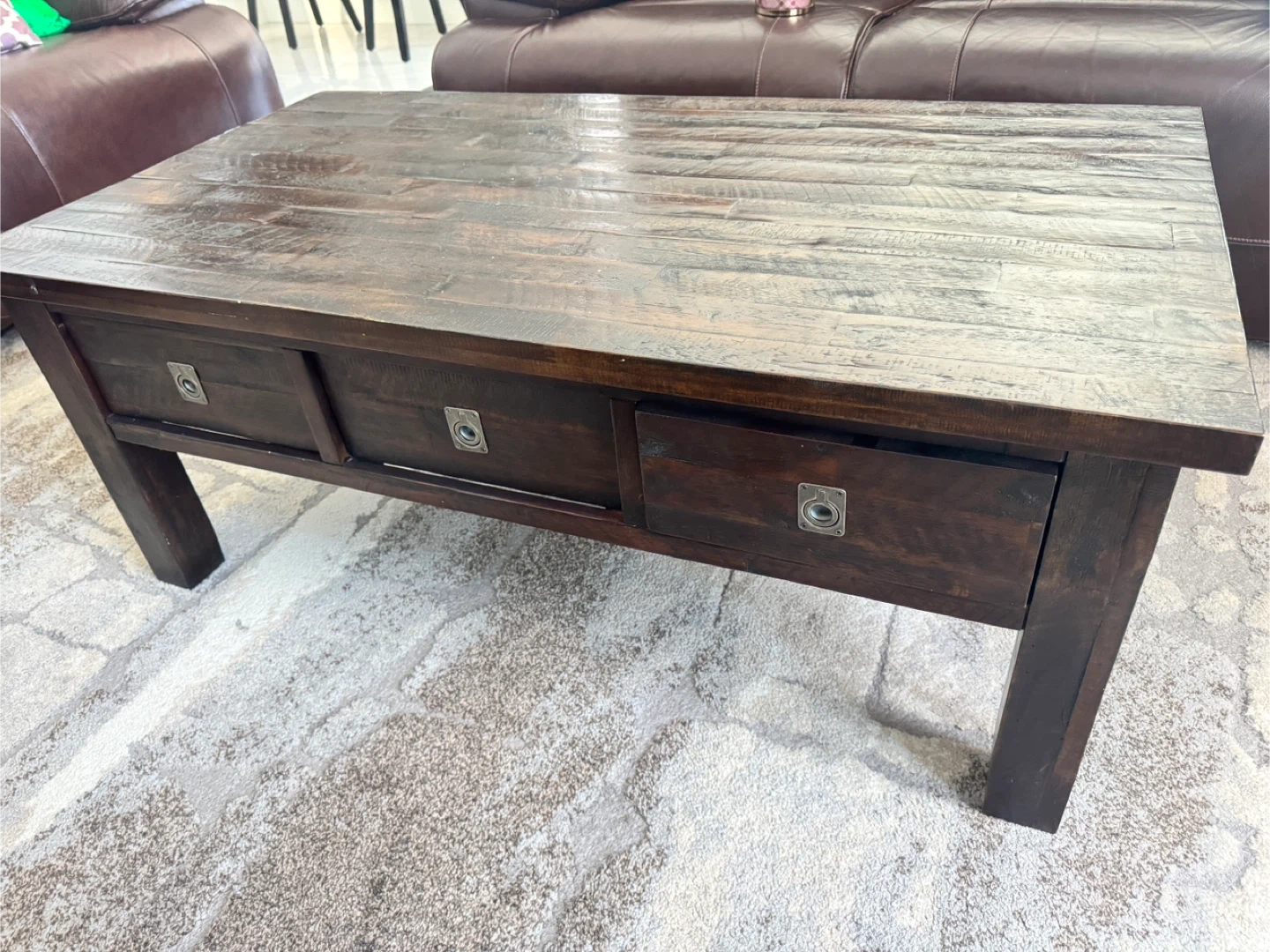 Rustic Coffee Table - Dark Brown Wood